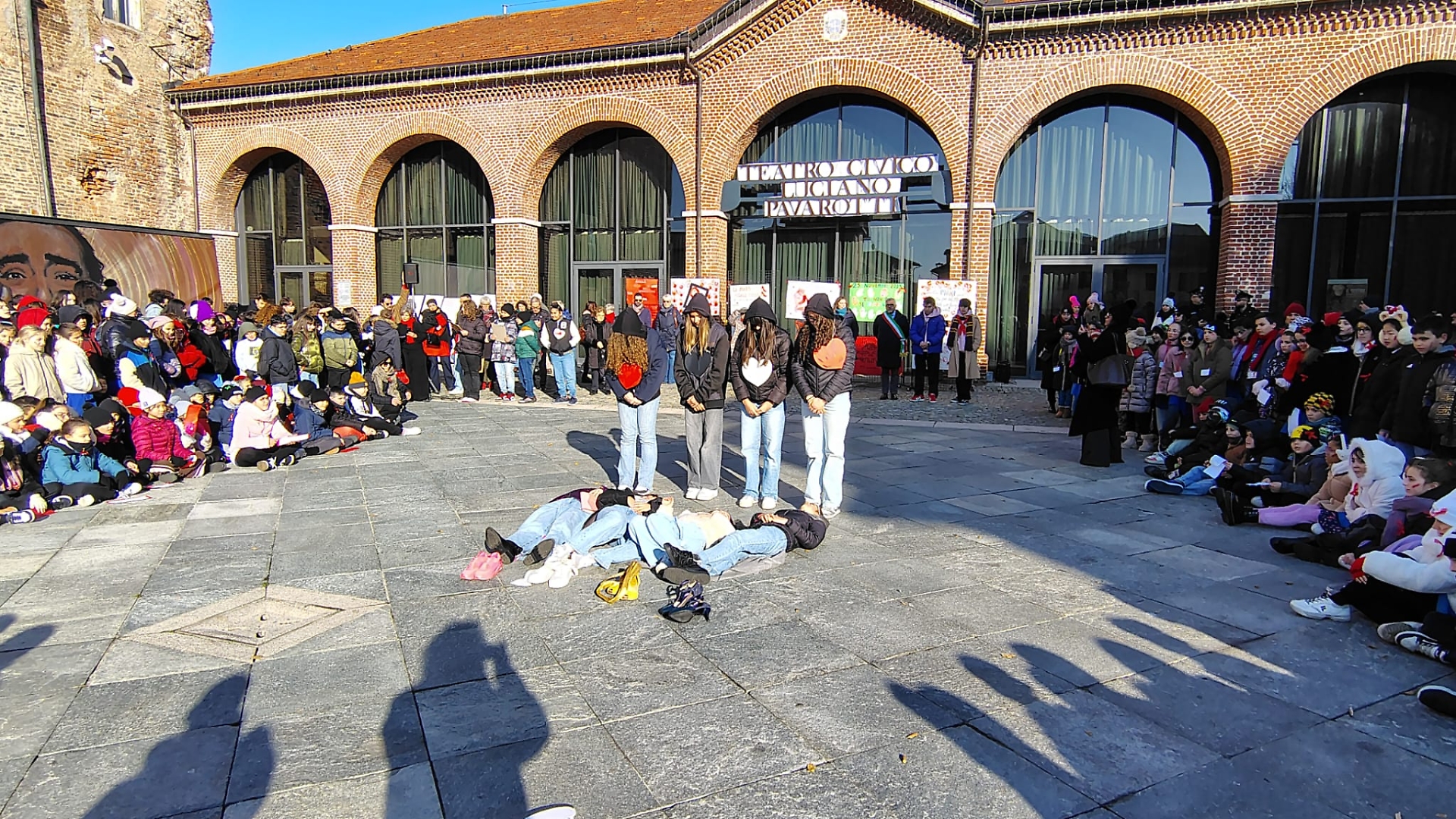 Centinaia di bambini e ragazzi, dalle elementari alle medie, hanno cantato, danzato, interpretato brevi scene ed esposto cartelli contro la violenza di genere. Un lavoro costruito in classe che ha trasformato la sensibilizzazione in un esercizio concreto di educazione civica.