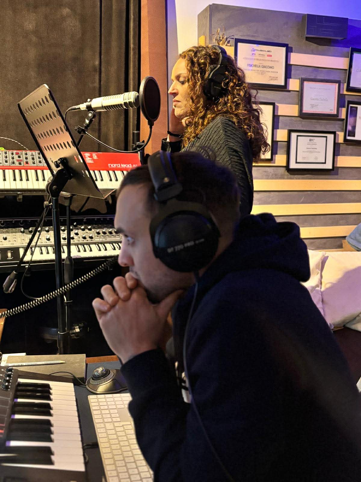 Poi c’è stata la magia della collaborazione: Valeria ha realizzato il progetto con amici musicisti che per lei sono famiglia. A partire dal nipote Giacomo Fisichella, che ha aiutato a produrre il brano nel suo studio di registrazione, Eddy Franco alla batteria, il Maestro Fabrizio Montagner a viola e violino, Stefano Cau al basso e chitarra elettrica, con il sostegno del Maestro Lorenzo Franchi e i consigli di molti altri amici musicisti. “Mi sento molto fortunata,” racconta Valeria.