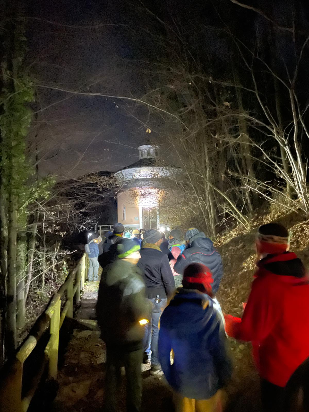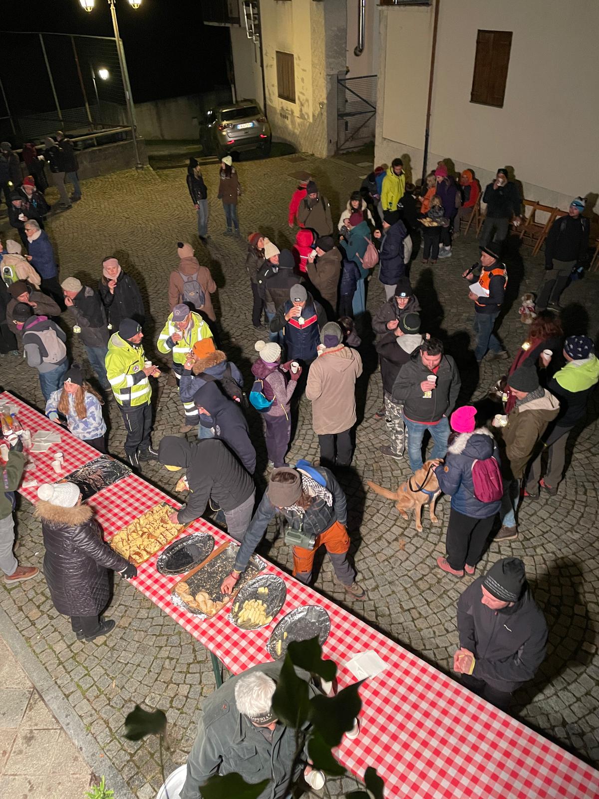 Con la luna piena a rischiarare i sentieri, il percorso si è snodato tra boschi silenziosi, mulattiere antiche e borgate già addobbate a festa. I gruppi partiti da Coassolo Capoluogo hanno costeggiato il Tesso per poi salire verso Monastero di Lanzo, attraversando angoli a tema natalizio, particolarmente suggestivi. I partecipanti partiti da Chiaves e da Frazione Mecca hanno invece raggiunto il paese seguendo mulattiere e tratti di strada, condividendo un’esperienza adatta a famiglie, bambini e anche ai loro amici a quattro zampe.