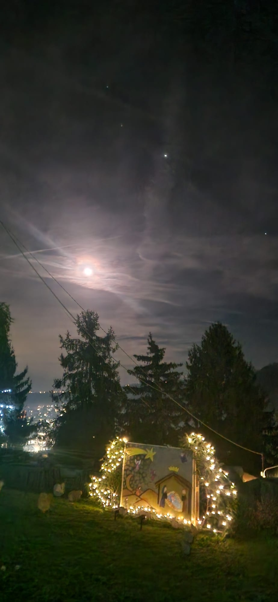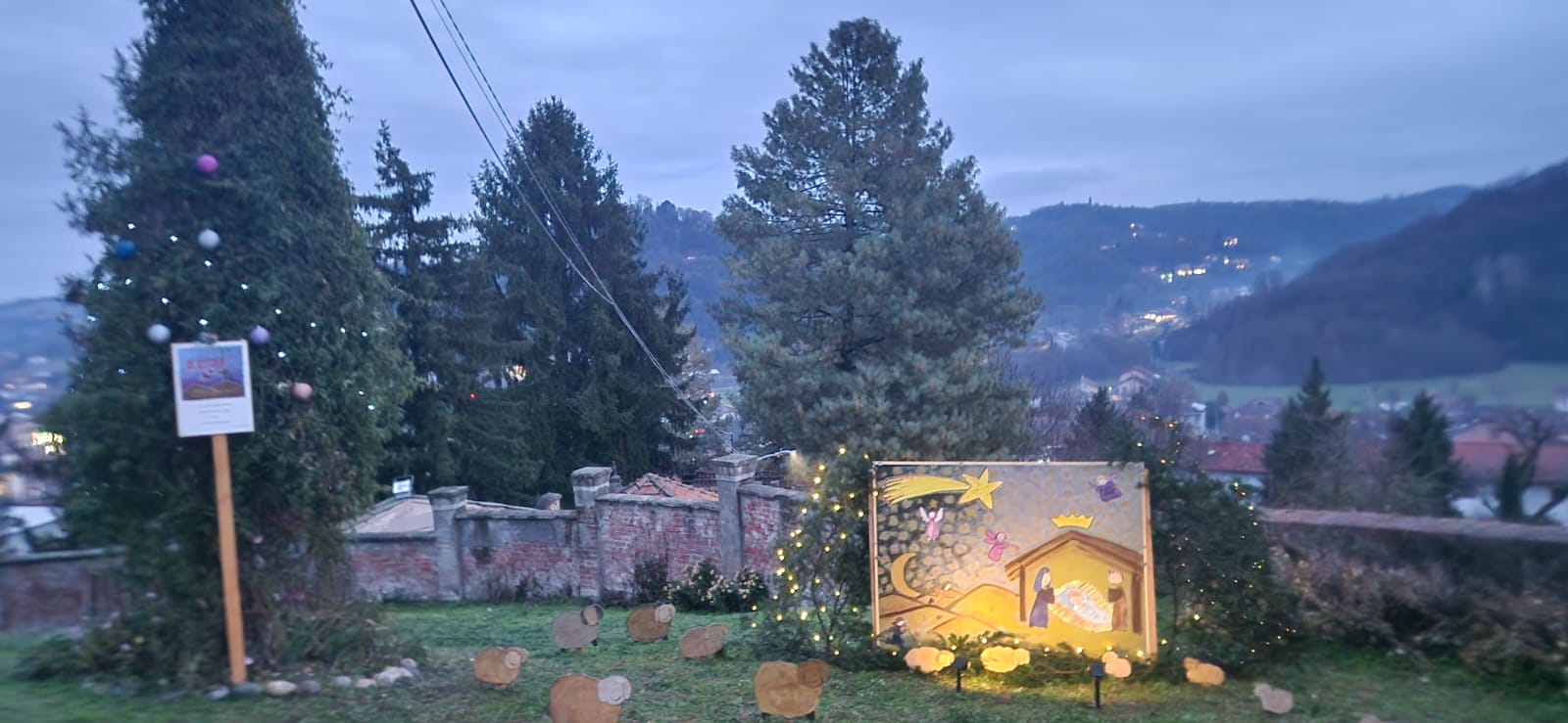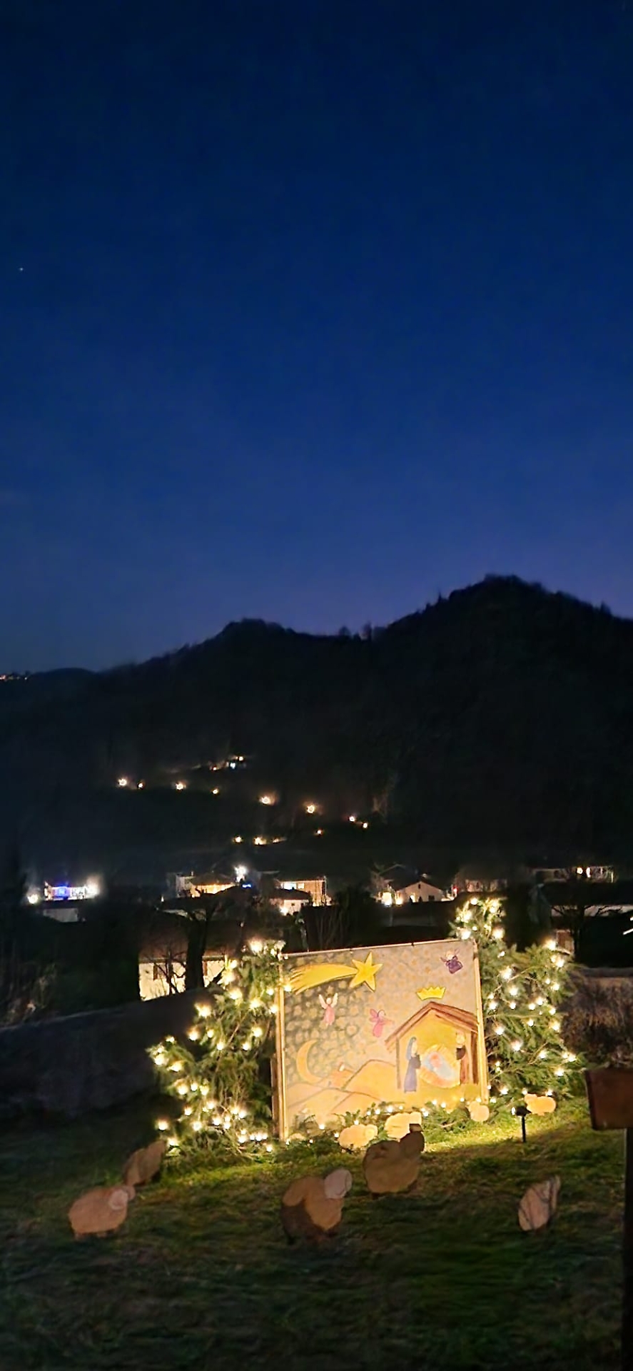 Chi sale fin quassù, soprattutto nelle ore serali, se ne accorge subito. Le luci calde disegnano il perimetro del belvedere, accompagnano lo sguardo verso la valle e incorniciano gli allestimenti senza sovrastarli. I presepi, semplici e curati, dialogano con il paesaggio e con il silenzio, più che con l’effetto scenografico. Nulla è gridato, nulla è casuale. Tutto sembra pensato per stare lì, in equilibrio tra la storia del luogo e il tempo che stiamo attraversando.