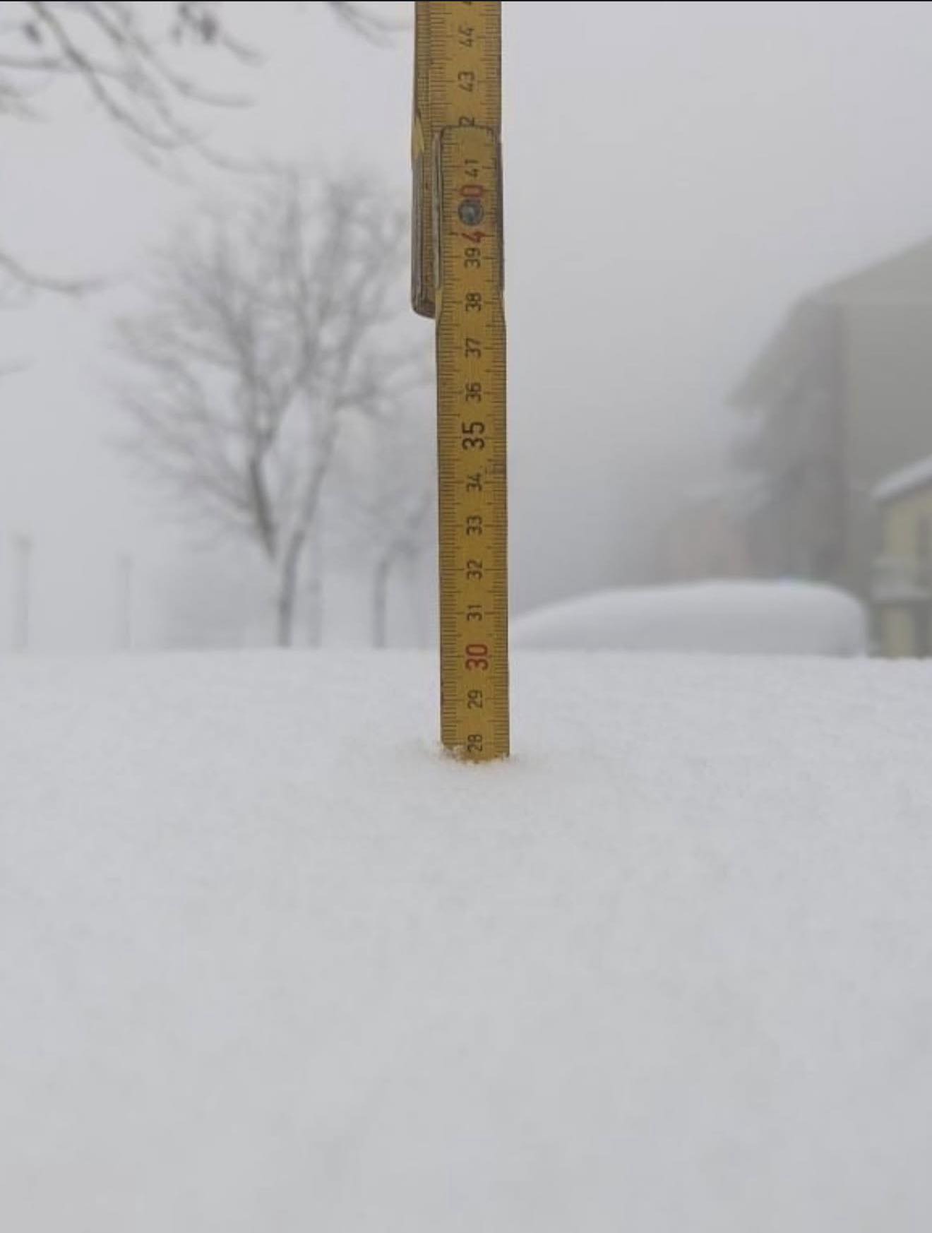 Poco più in alto, la situazione diventa ancora più significativa. A Mombarcaro, il paese più alto delle Langhe, noto come tetto delle Langhe con i suoi 896 metri, l’accumulo al suolo ha superato i 40 centimetri di neve fresca. Un dato che fotografa la portata dell’evento e restituisce immagini più simili a località alpine che a colline vitate, con rallentamenti alla circolazione e interventi continui di sgombero.