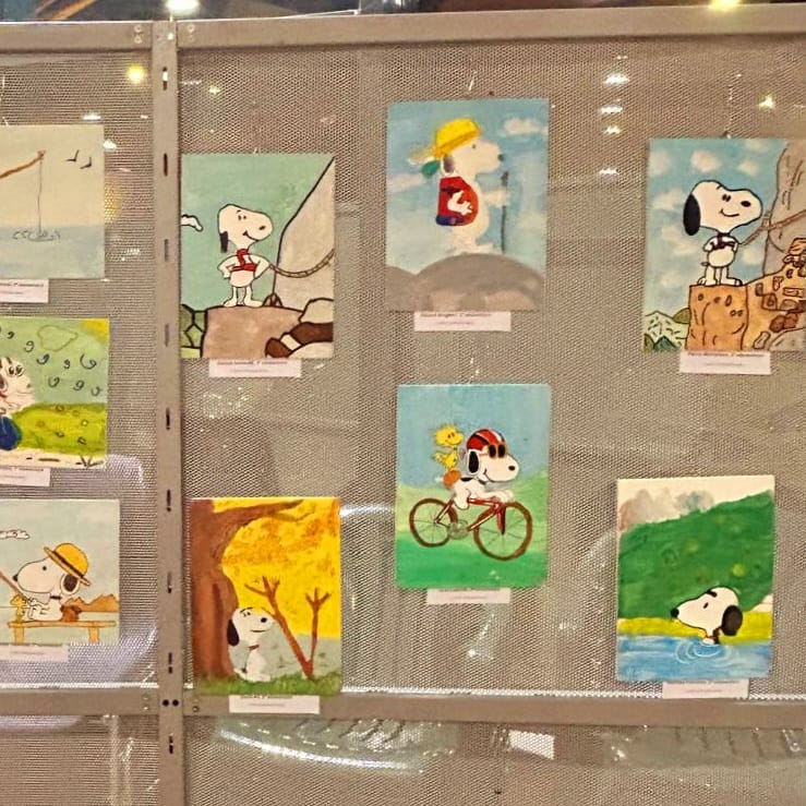 Molto apprezzati anche i lavori dedicati al fiume Stura, realizzati dai ragazzi di quarta e quinta elementare con l’uso della resina epossidica. In questi lavori il fiume diventa voce narrante e racconta la vita sulle sue rive, le attività sportive, la fauna, i rumori dell’acqua e le storie del territorio. Non sono mancati poi accenti più giocosi, come l’iconico Snoopy impegnato negli sport praticabili a Lanzo, dall’arrampicata al trekking.