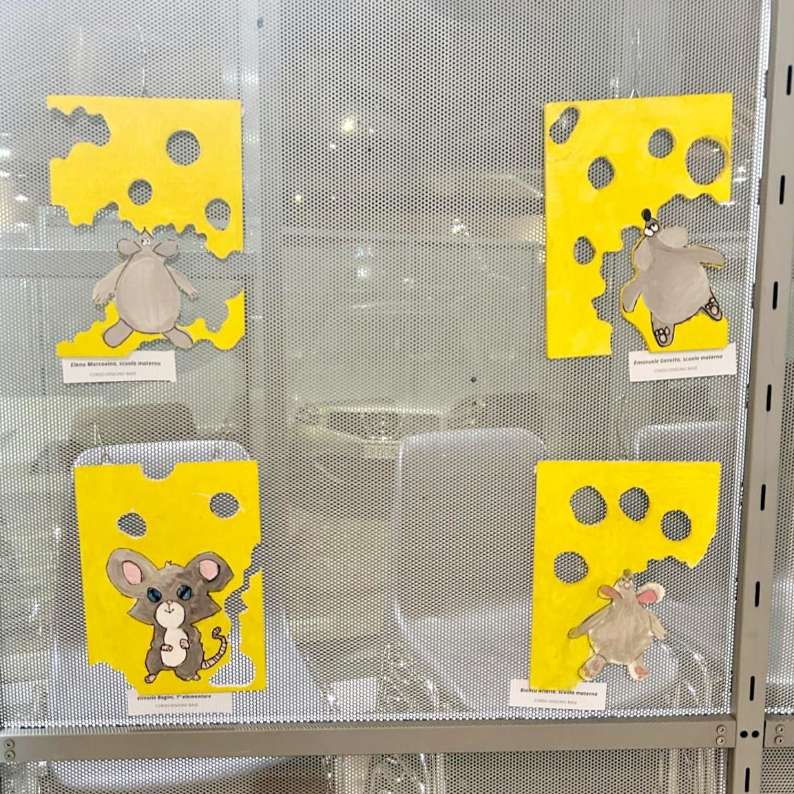 Accanto al digitale, grande spazio è stato dato alle tecniche manuali. I più piccoli della Scuola Materna hanno animato le tavolette con simpatici topolini su fondi bucherellati, evocando delle fette di Toma, mentre i ragazzi del corso di Tecniche Artistiche hanno dato vita a progetti più complessi, come Il pescatore di sogni, dove l’intaglio diventa parte integrante della narrazione.