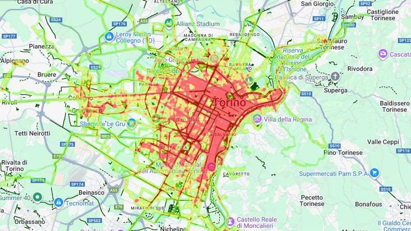 Mappa con i percorsi coperti dai partecipanti a "Pedala, UniTo ti premia"