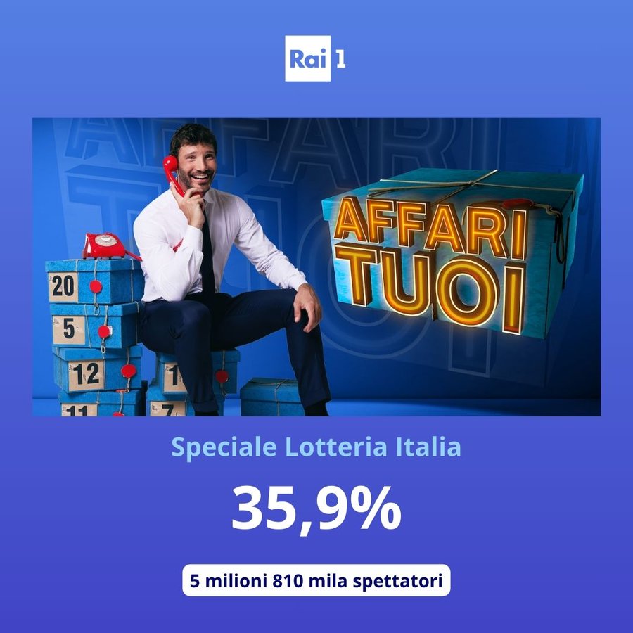 È stata un’Epifania fortunata anche per la televisione. “Affari tuoi – Lotteria Italia”, in onda su Rai 1 e condotto da Stefano De Martino, ha trionfato negli ascolti, registrando 5.810.000 spettatori e uno share del 35,9%, confermando il forte legame tra il programma e la tradizione della Lotteria Italia.