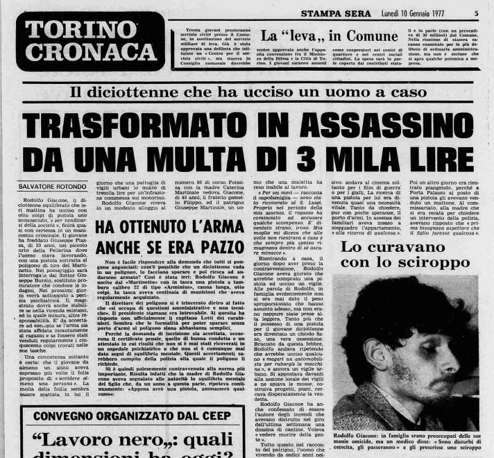 Stavolta il narratore è Rodolfo stesso. Siamo a Torino, in un giorno imprecisato del 1976 e il giovane, che ora ha 17 anni, è in sella al suo motorino nei pressi del Parco della Pellerina. Non sappiamo cosa accada nello specifico, ma la municipale lo ferma e gli commina una sanzione di 3mila lire.