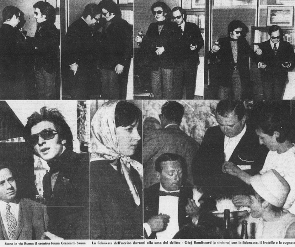 La mattina del 10 febbraio 1970, la ragazza arriva in azienda verso le 8 e un dipendente la informa che il titolare non si è presentato. L’uomo, in attesa di sposarla, abita da solo in una casa a due piani che si trova a pochi passi dalla fonderia. Rosangela entra con le proprie chiavi, sale al livello superiore e lo trova in camera da letto. È sotto le coperte rimboccate e sotto il mento, composto, con gli occhi chiusi. Il viso è stato crivellato da 4 pallottole calibro 22 sparate a distanza ravvicinata e che hanno ricoperto di sangue qualsiasi cosa fosse intorno: Giuseppe Giaj Baudissard, 40 anni, è stato assassinato.