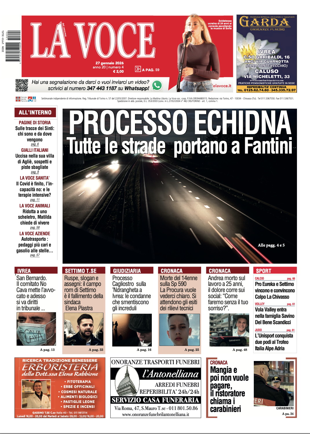 Testi e foto qui pubblicati sono proprietà de LA VOCE DEL CANAVESE tutti i diritti sono riservati. L’utilizzo dei testi e delle foto on line è, senza autorizzazione scritta, vietato (legge 633/1941).