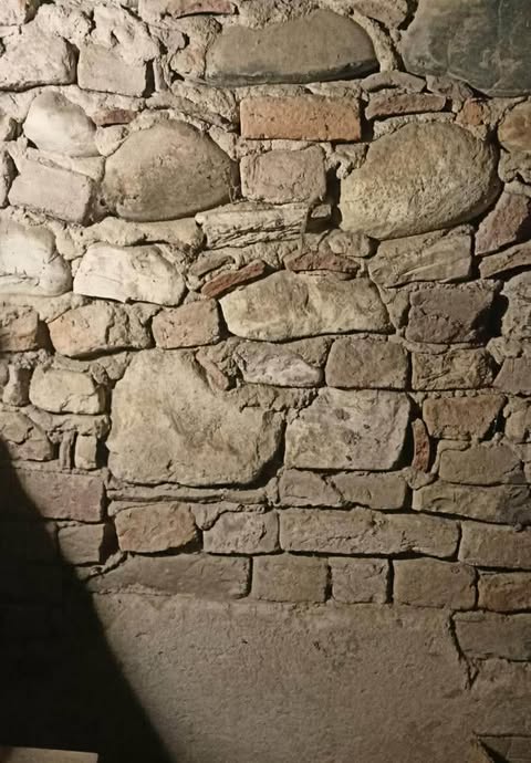 Intonaco del 1600 (in basso) muro del 1700 fatto con materiale di recupero (sopra l’intonaco)