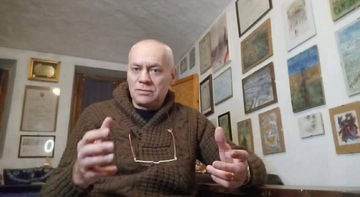 Sergio Sapetti nel suo studio al Bricco Basso (luogo della tesi)