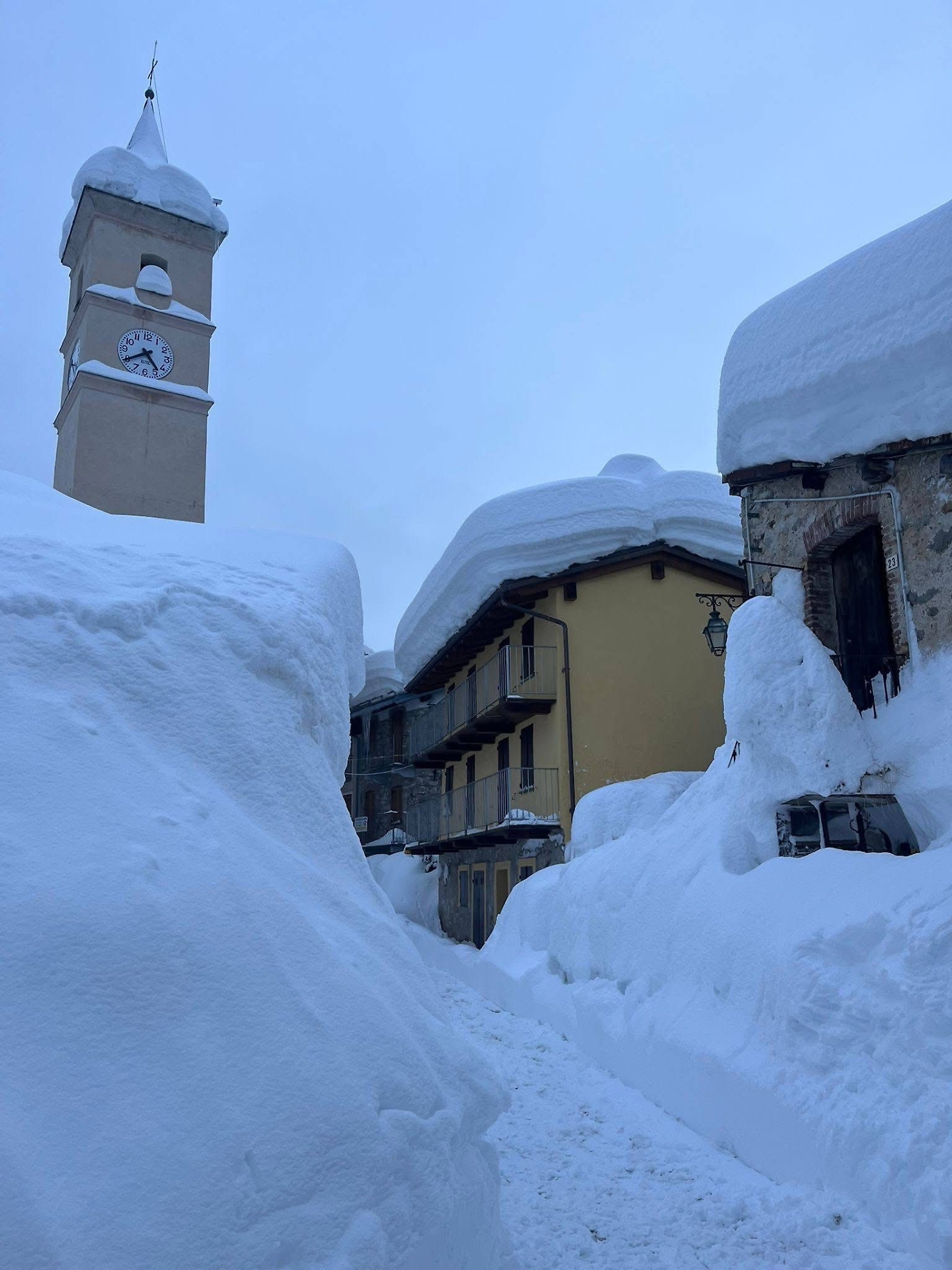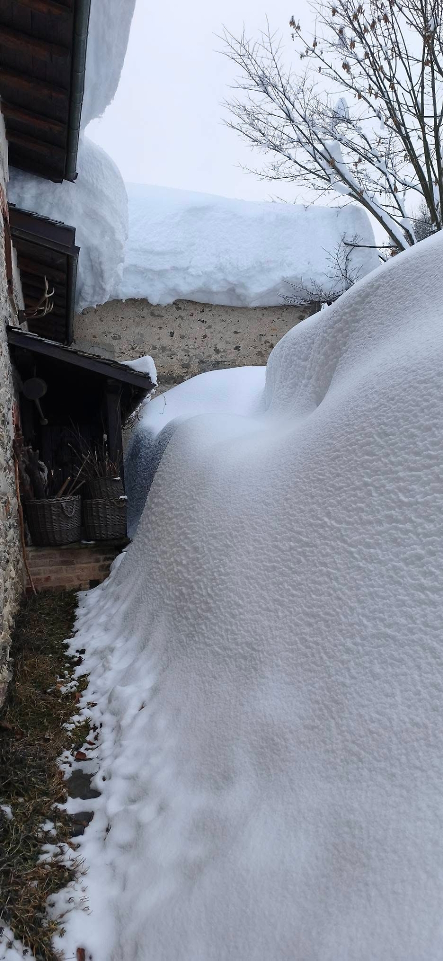Nella borgata, dopo l’ultima nevicata copiosa, il manto nevoso ha raggiunto fino a un metro e mezzo di spessore al suolo. Una quantità significativa, soprattutto se rapportata a una serie di inverni segnati da scarso innevamento, temperature spesso superiori alla media e stagioni sciistiche vissute tra difficoltà e adattamenti forzati. In poche ore, l’ultimo fronte perturbato ha depositato fino a 45 centimetri di neve fresca, cambiando radicalmente il volto del territorio.