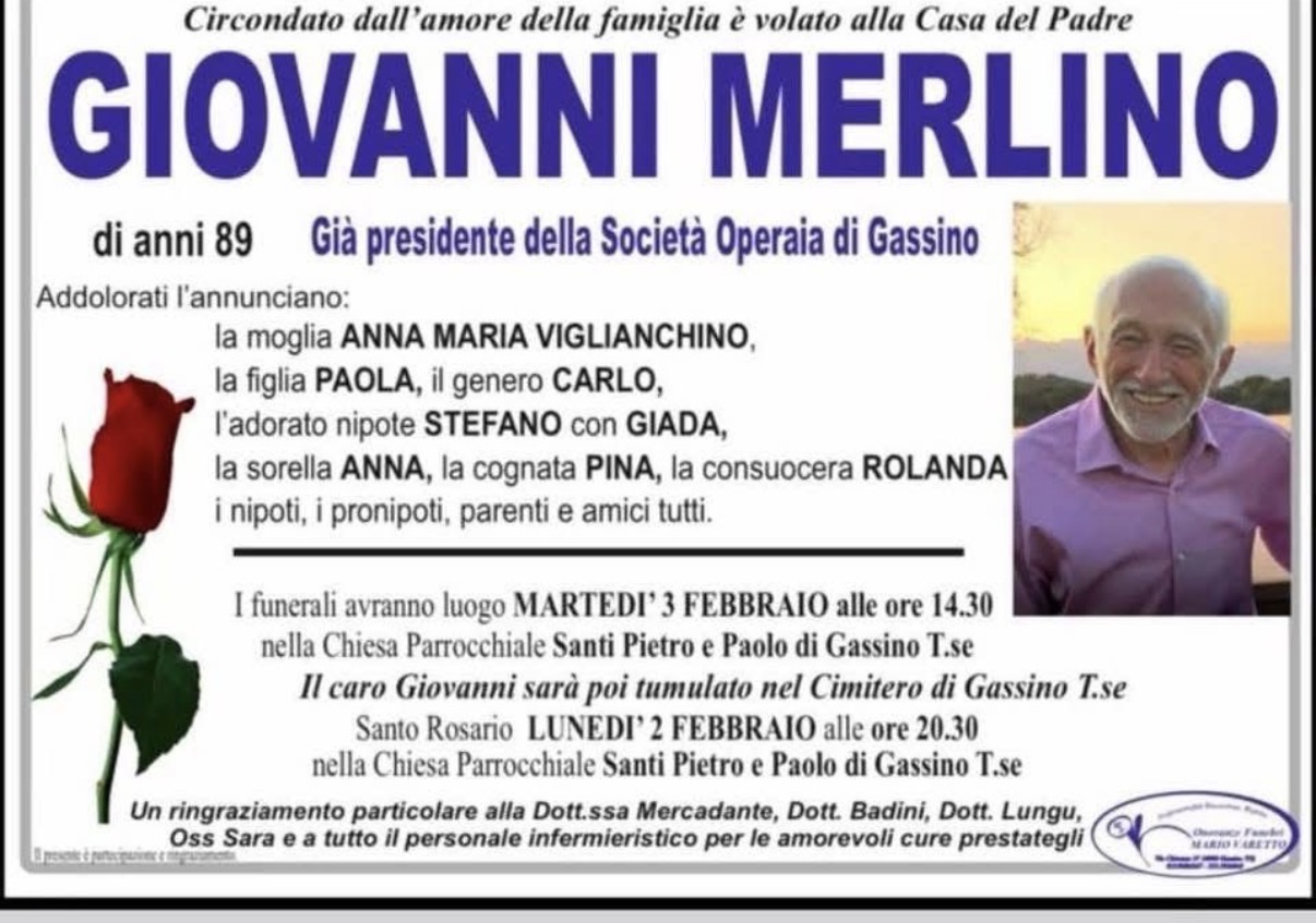 Con la scomparsa di Giovanni Merlino, Gassino perde una figura legata alla propria storia associativa e a una stagione di impegno civile che ha segnato la vita del paese.