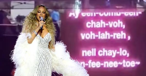 Il segreto della pronuncia di Mariah Carey era infatti tutto lì, scritto nero su bianco. Sullo schermo posizionato davanti all’artista non scorreva il testo tradizionale della canzone, ma una versione fonetica, pensata per facilitare la lettura a una cantante madrelingua inglese. Un italiano volutamente “maccheronico”, costruito per riprodurre i suoni corretti: “Volare” diventava “voh-lah-reh”, “nel cielo infinito” si trasformava in “nell chay-lo een-fee-nee-toe”. Un testo quasi incomprensibile per chi conosce l’italiano, ma estremamente efficace dal punto di vista sonoro.