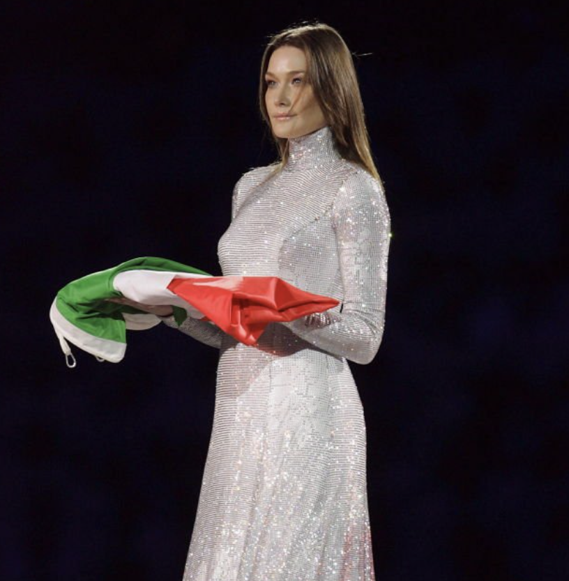 In quel contesto, un momento in particolare è rimasto scolpito nella memoria: Carla Bruni che attraversa lo Stadio Olimpico portando la bandiera italiana. Non era solo una top model famosa a livello internazionale. Era il simbolo di un’Italia che sapeva unire bellezza, talento e discrezione, senza bisogno di alzare la voce.