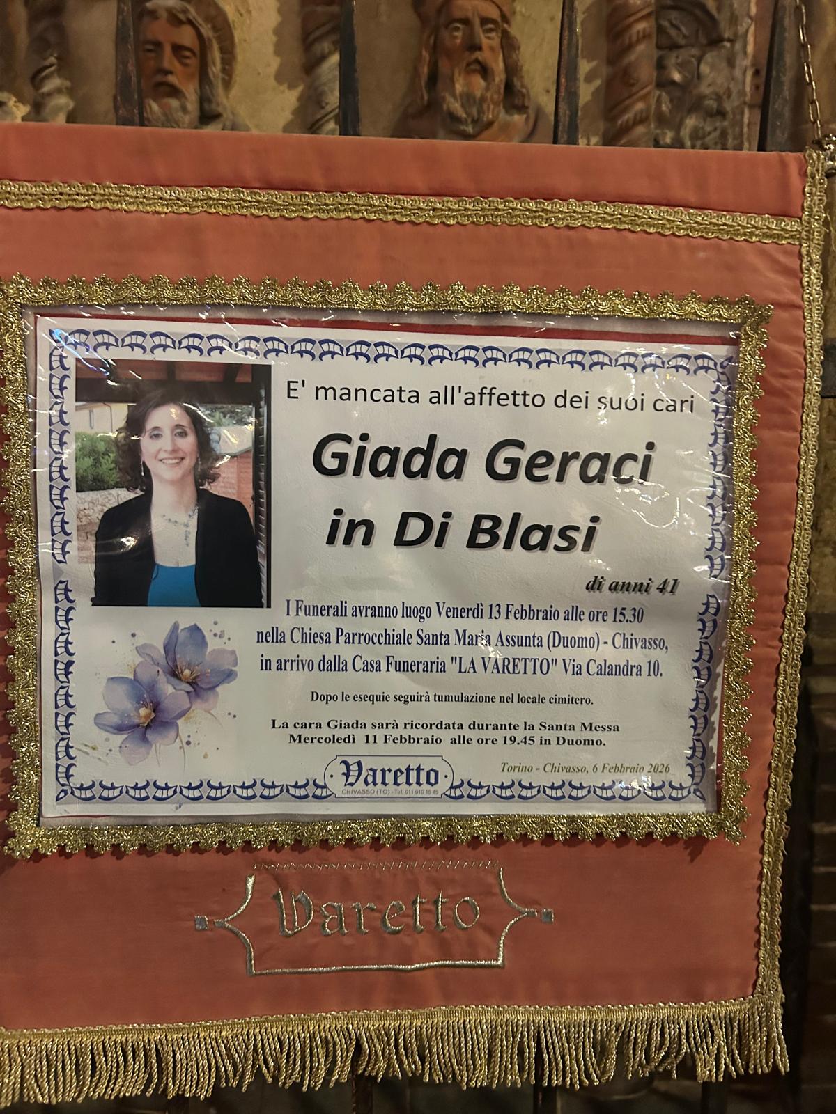 A Chivasso venerdì 13 febbraio sarà il giorno dell’ultimo saluto a Giada Geraci, insegnante di 41 anni, morta il 6 febbraio dopo un improvviso malore. La notizia ha attraversato le aule e i corridoi dell'Istituto Comprensivo Dasso, le famiglie come un colpo secco, lasciando una comunità scolastica e cittadina stordita, incredula.