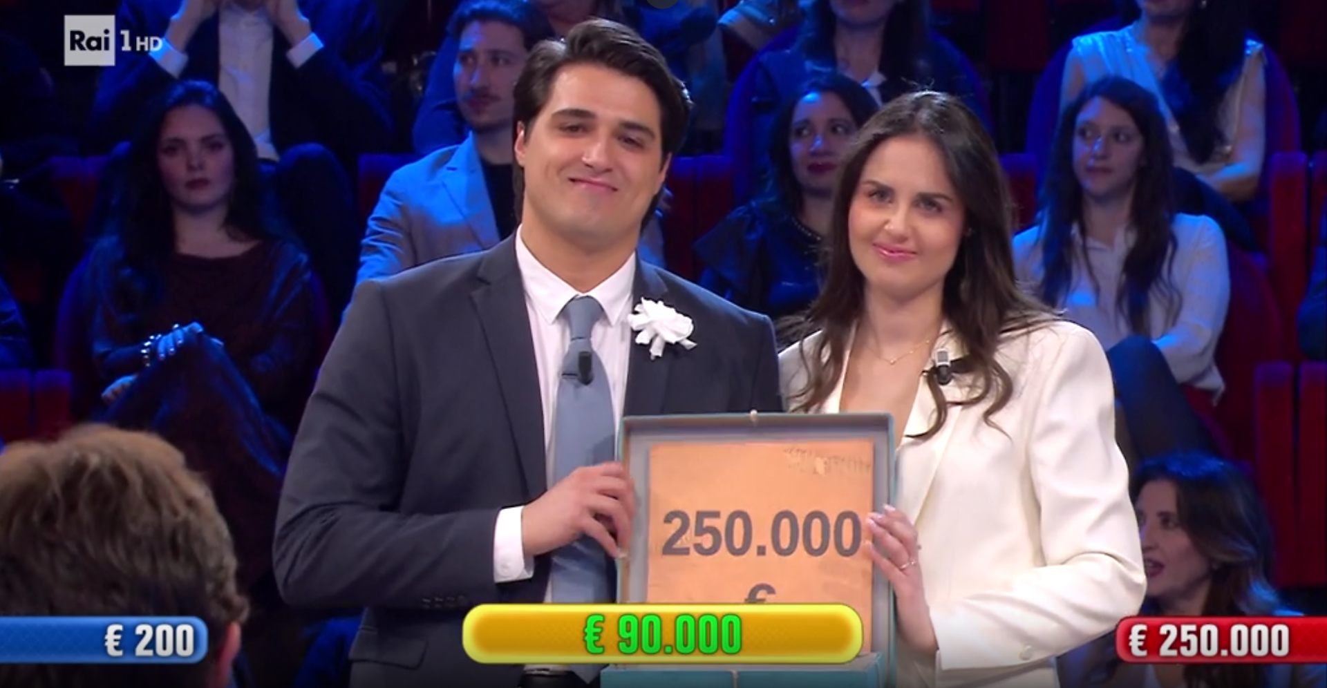 Nel finale restano sul tabellone 200 euro e 250.000 euro. L’ultima telefonata porta un’offerta da 90.000 euro. «Questi soldi ci darebbero una grossa mano, è difficile scegliere. Da una parte abbiamo tantissimo, dall'altra pochissimo», dicono i due promessi sposi. «Abbiamo ricevuto offerte molto alte, abbiamo fatto il cambio che ci ha portato bene», aggiungono. Dopo un ultimo giro di consigli, accettano. Una decisione prudente, che con il senno di poi pesa: nel loro pacco c’erano 250.000 euro.