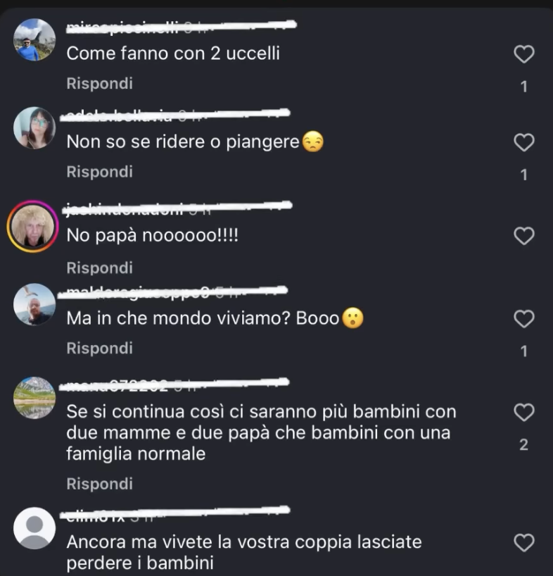 Ma ciò che colpisce non è tanto la notizia in sé, quanto la reazione che ha generato. Sotto gli articoli, sui social, nei commenti, si è scatenata un’ondata di odio. Frasi come “ma in che mondo viviamo” oppure “Se si continua così ci saranno più bambini con 2 mamme e 2 papà che bambini con una famiglia normale” hanno fatto da eco a una narrazione intrisa di giudizio e pregiudizio. Espressioni di derisione, di sgomento ostentato, di condanna morale.