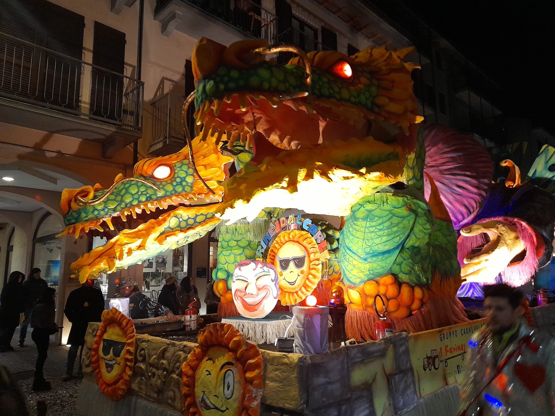 Il lungo corteo si dipana lungo le vie cittadine con un percorso più ampio e più lento rispetto a quello delle settimane precedenti perché i carri in certe strettoie non potrebbero passare! Così, partendo dal piazzale della Stazione, si percorre il vicino viale, si passa davanti al Bennet e dietro la chiesa parrocchiale, si fiancheggia il vecchio ospedale raggiungendo poi la Piazza del Comune e Via Educ.