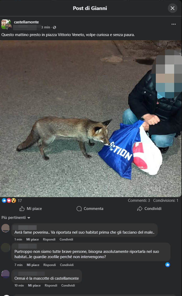 L’immagine di piazza Vittorio Veneto racconta proprio questo: un animale che non scappa immediatamente perché ha imparato che in quel punto può trovare qualcosa di interessante. Non è affetto. Non è fiducia. È opportunismo naturale.