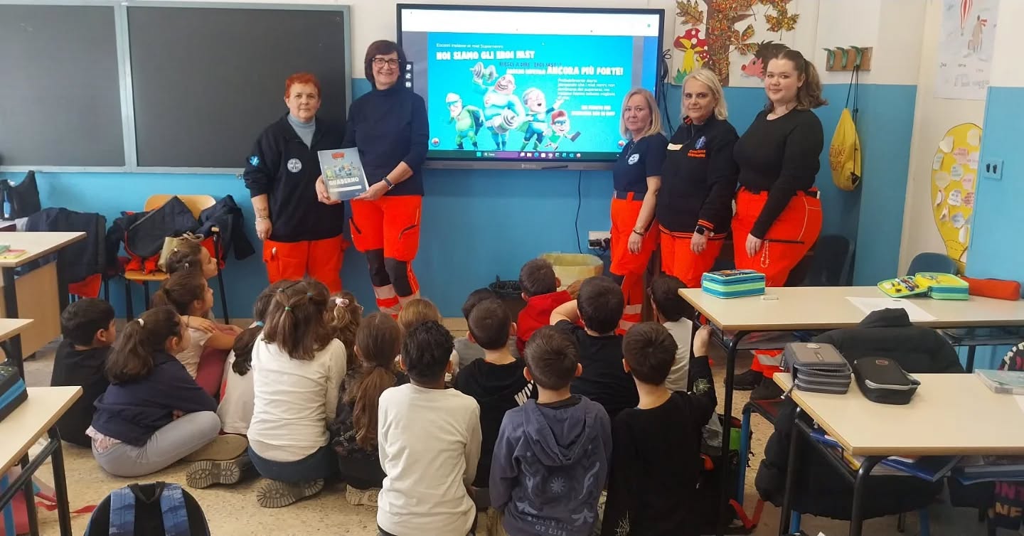 Durante il percorso formativo, i bambini hanno avuto l’opportunità di entrare in contatto con una realtà fondamentale del territorio. I volontari dell’associazione hanno illustrato il loro lavoro quotidiano, spiegando come si interviene nelle situazioni di emergenza e quanto sia importante agire con prontezza, competenza e spirito di servizio.