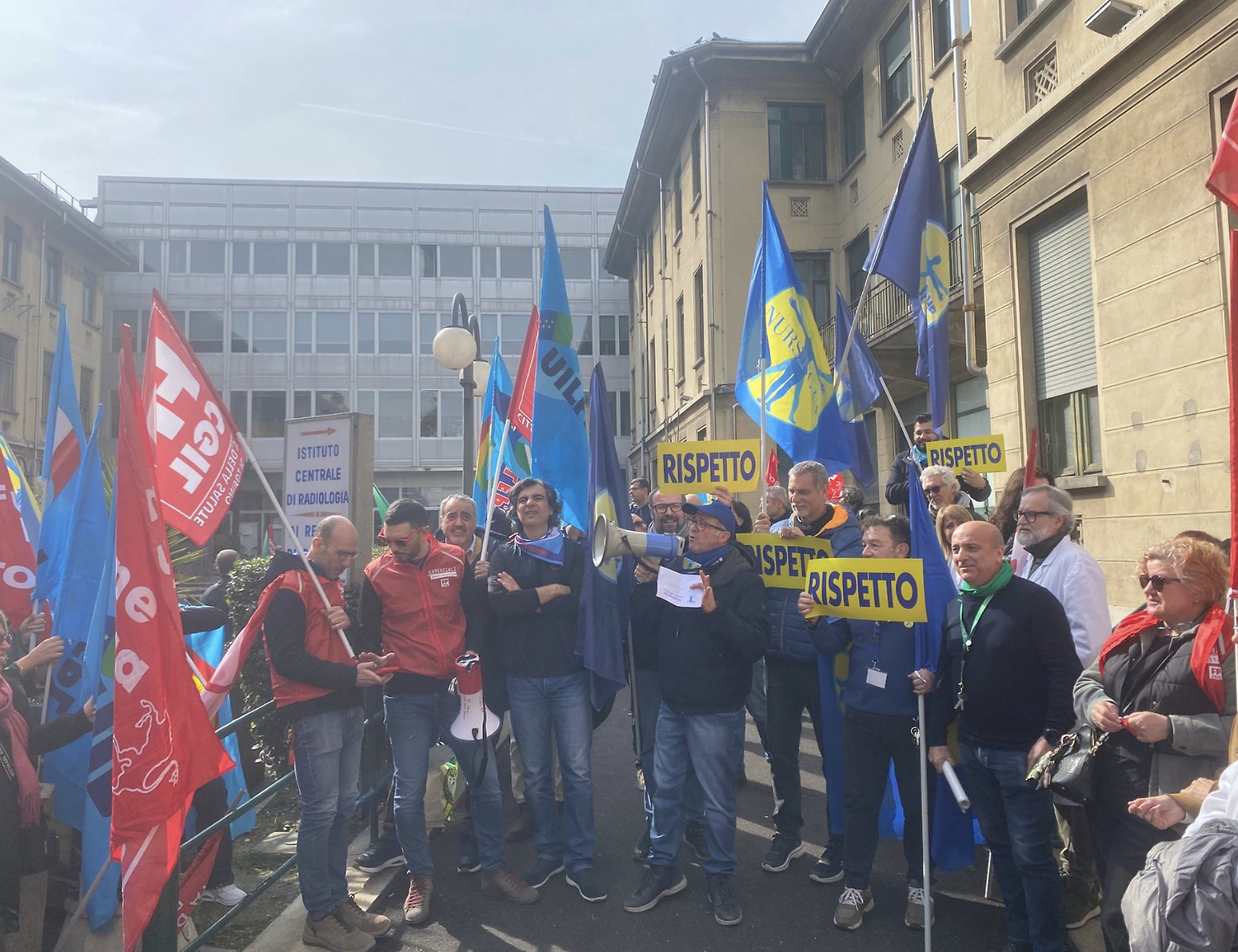 Mattinata di protesta davanti all’ospedale Molinette di Torino, dove il personale del comparto sanitario della Città della Salute e della Scienza ha proclamato lo stato di agitazione. L’iniziativa si è svolta oggi, 11 marzo, con un’assemblea dei lavoratori davanti all’ingresso della struttura ospedaliera. Tra bandiere sindacali e cartelli con la scritta “Rispetto”, infermieri, operatori sanitari e altri dipendenti hanno manifestato per denunciare una situazione che, secondo le organizzazioni sindacali, sarebbe diventata sempre più difficile negli ultimi mesi.