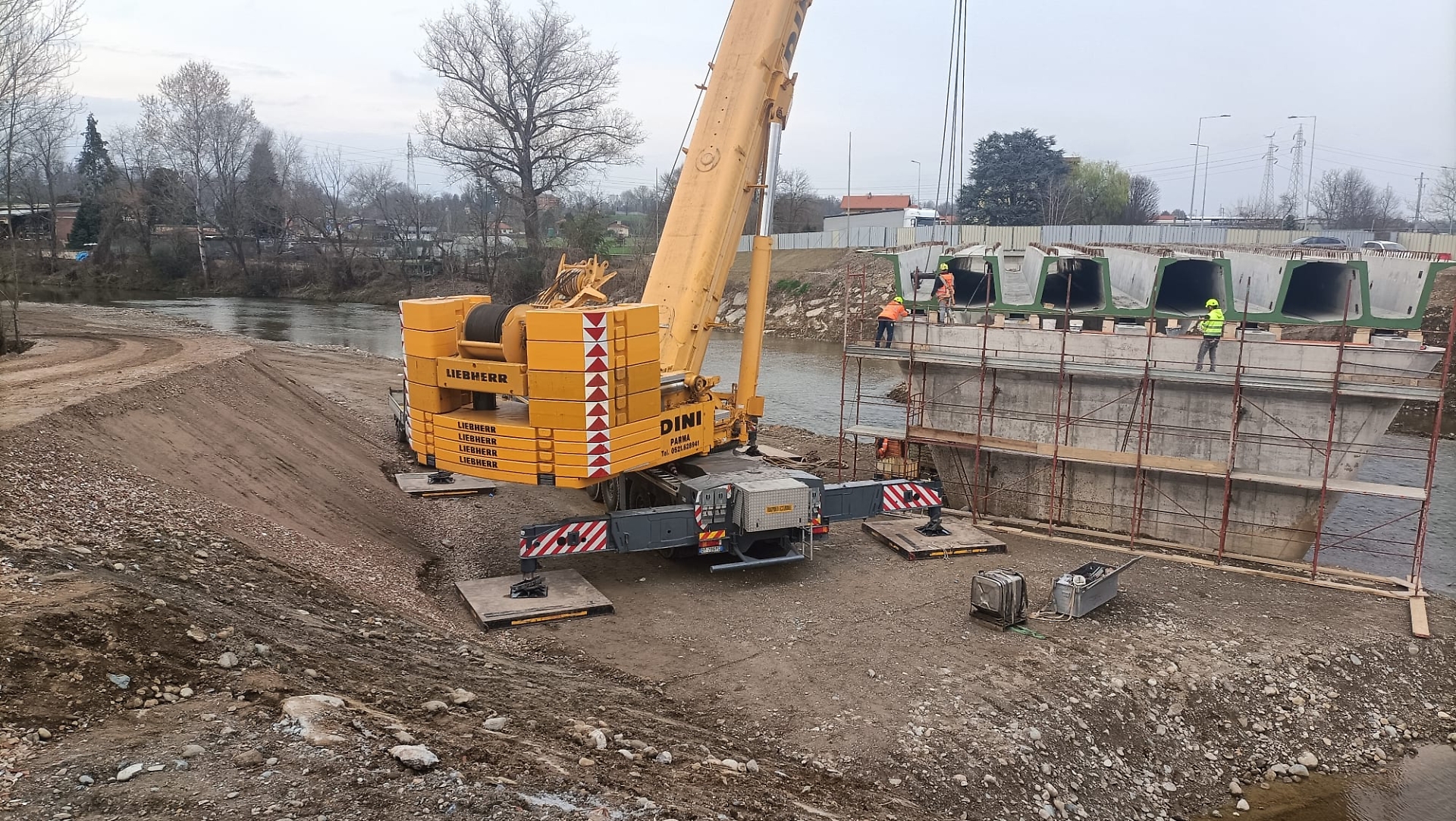 Il nuovo ponte sul torrente Ceronda prende forma. A Venaria Reale sono entrati nella fase più delicata i lavori per la realizzazione della nuova infrastruttura: nei giorni scorsi è iniziato infatti il varo delle travi prefabbricate che costituiranno l’impalcato del ponte, una delle operazioni tecnicamente più complesse dell’intero cantiere. Si tratta di un passaggio fondamentale per la costruzione dell’opera, che nei prossimi giorni proseguirà con il posizionamento delle altre campate, fino al completamento della struttura portante del ponte.