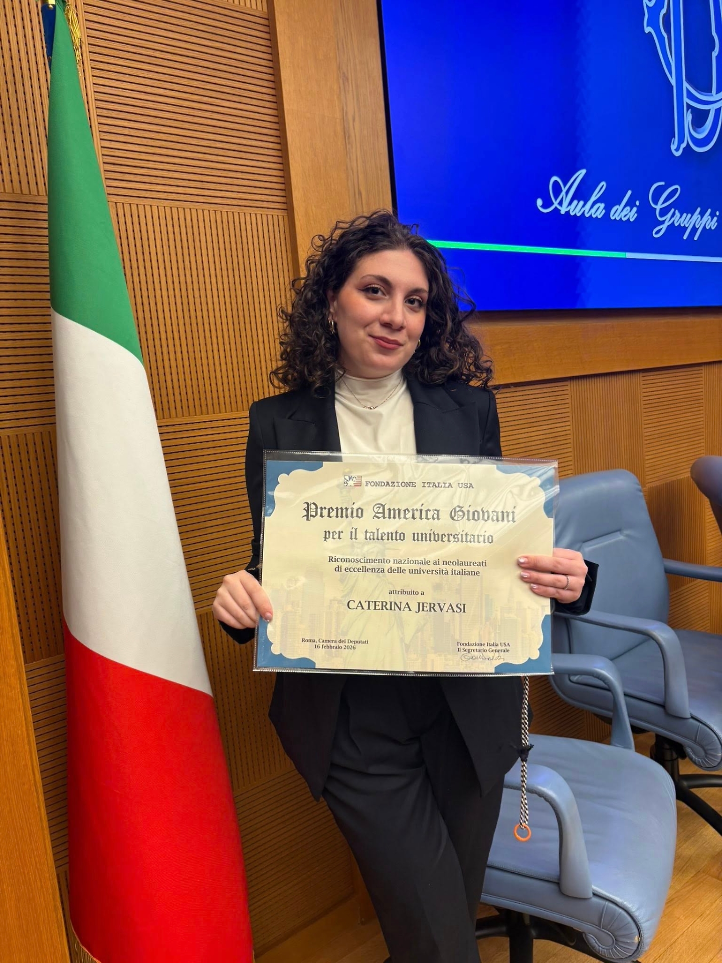 Lunedì 16 febbraio 2026, a Roma, nella sede della Camera dei Deputati, Jervasi ha ricevuto la prestigiosa borsa della Fondazione USA, riservata ogni anno a soli mille neolaureati in tutta Italia selezionati in base a merito accademico, percorso universitario ed esperienze internazionali. Un attestato di fiducia che premia non solo l’eccellenza scolastica, ma anche la capacità di muoversi tra lingue, culture e competenze richieste da un mercato sempre più globale.