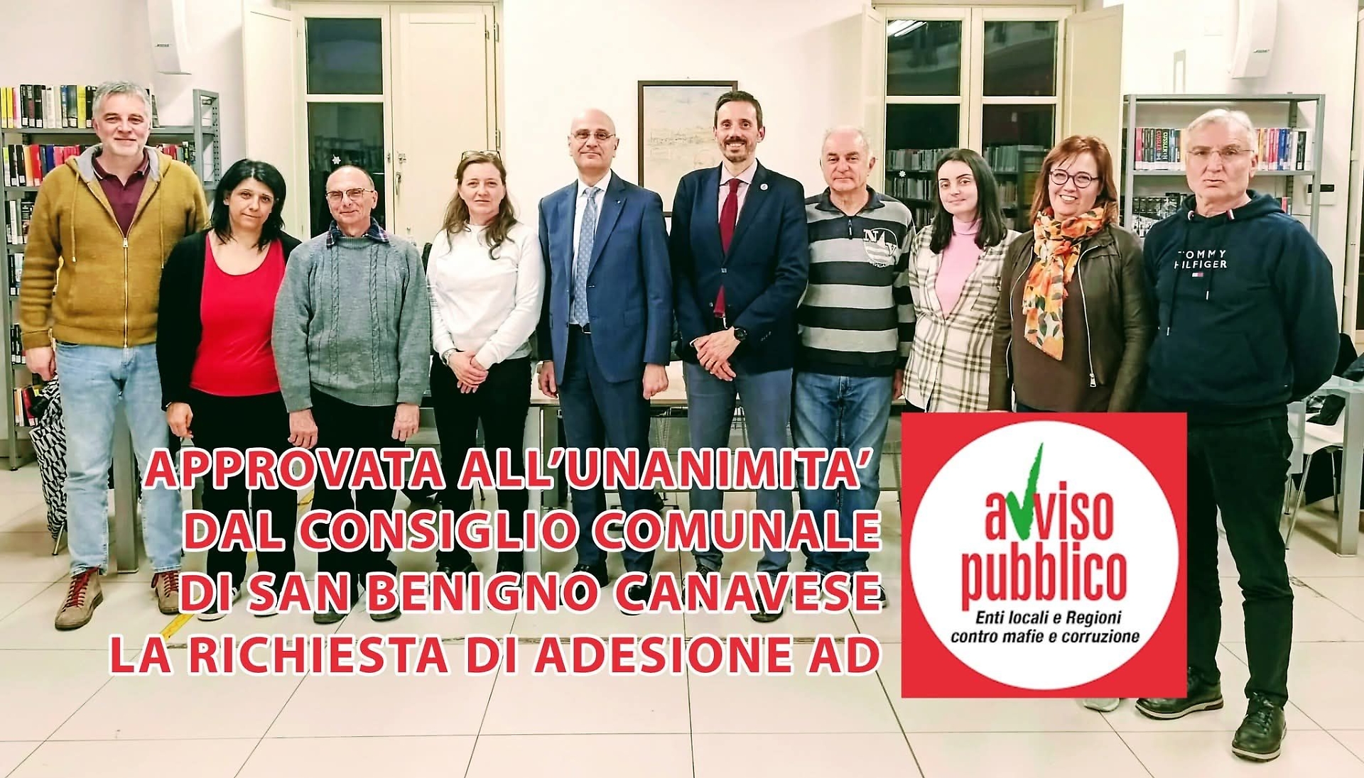 Anche in vista della grande manifestazione nazionale di Torino del 21 marzo, la XXXI Giornata della Memoria e dell’Impegno in ricordo delle vittime innocenti delle mafie, il Comune di San Benigno Canavese compie una scelta netta e condivisa: l’adesione ad Avviso Pubblico, la rete di Enti locali e Regioni contro mafie e corruzione.