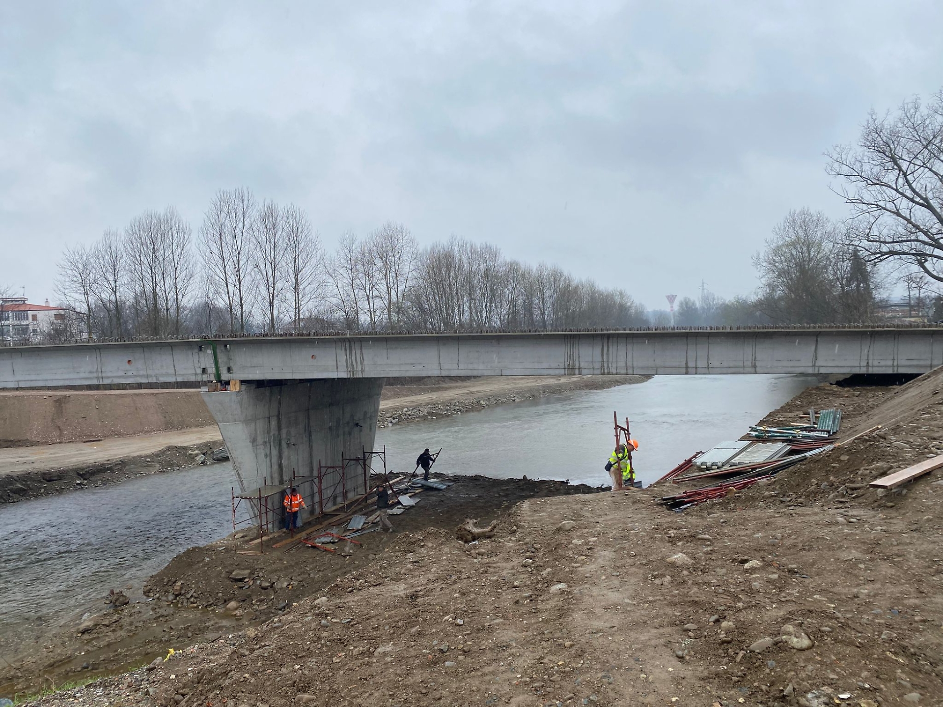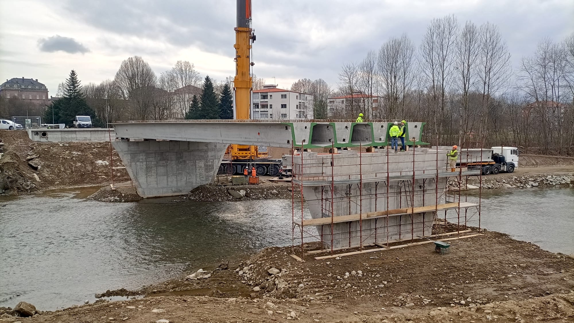 Le lavorazioni in corso riguardano anche la realizzazione dei traversi in cemento armato, posizionati in corrispondenza delle spalle e delle pile del ponte. Successivamente, si procederà con la posa delle predalles, elementi prefabbricati che costituiscono la base per la soletta definitiva.