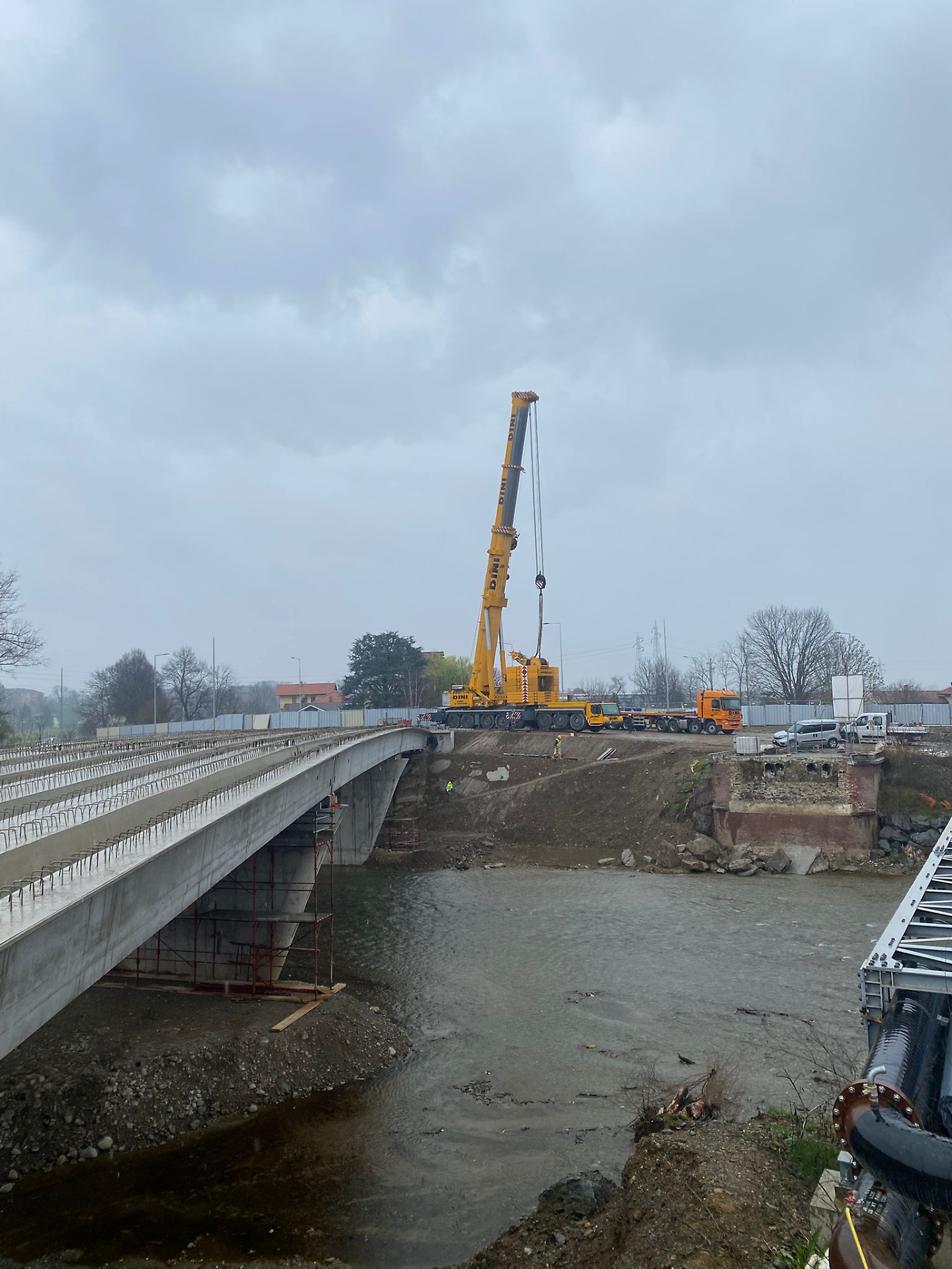 Il cantiere procede ora verso il completamento dell’impalcato, uno degli elementi strutturali principali del ponte. Parallelamente, è prevista la ricollocazione dei sottoservizi, attualmente sistemati su una struttura provvisoria in carpenteria metallica, il cosiddetto pipe rack. Si tratta di un passaggio cruciale per garantire il corretto funzionamento delle reti tecnologiche e la piena operatività dell’infrastruttura una volta ultimata.