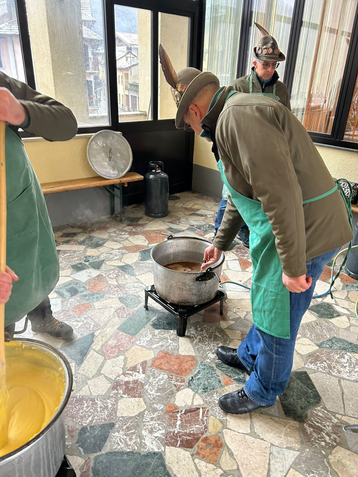 Il capogruppo Marino Poma racconta che la polentata di San Giuseppe è una tradizione che risale a oltre cinquant’anni fa, quando il 19 marzo era ancora giorno festivo. In quell’occasione si preparava e si distribuiva la polenta in piazza, segnando simbolicamente la ripresa della vita sociale del paese con l’arrivo della primavera. Con la soppressione della festività l’usanza si era progressivamente persa, fino a quando, tre anni fa, il Gruppo Alpini di Ceres ha deciso di riproporla. Da allora, la domenica più vicina al 19 marzo è diventata una vera e propria ricorrenza, caratterizzata dalla tradizionale polenta concia e dalle note dell’immancabile Corpo Musicale Alpino, che anche quest’anno ha rallegrato la giornata.