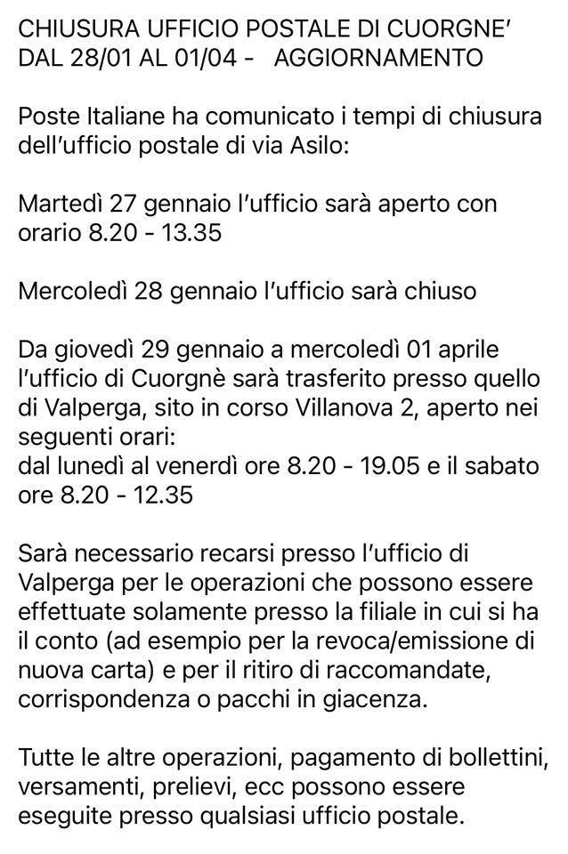 C’è poi chi porta esempi concreti: “Quando hanno fatto i lavori alla posta a Leinì hanno montato un prefabbricato e spostato lì il servizio. Si poteva fare anche a Cuorgnè”. Un confronto che alimenta ulteriormente le critiche e mette in evidenza possibili alternative non adottate.