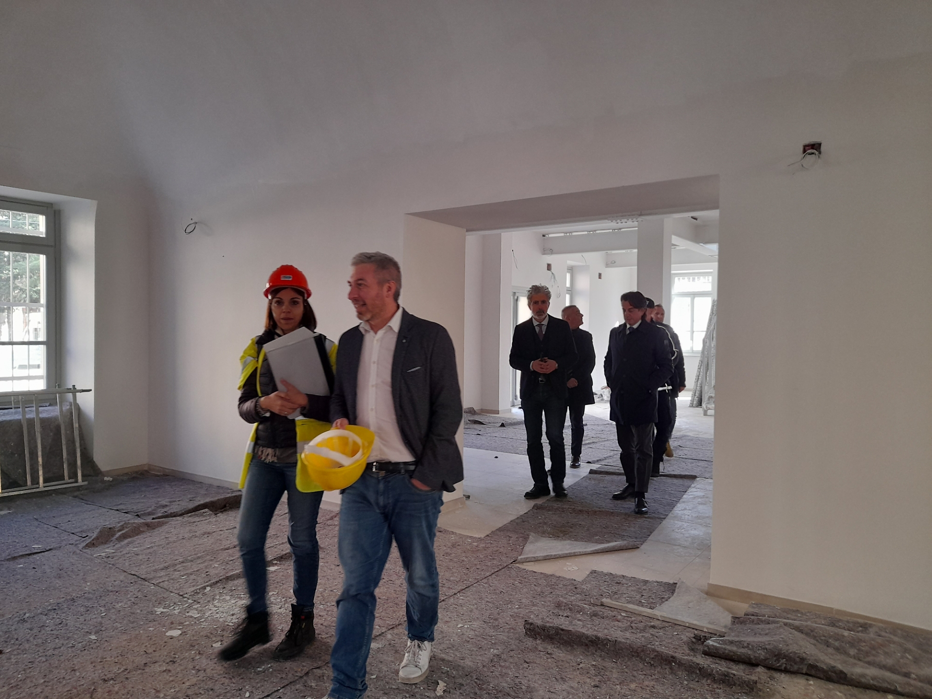 Si sta ancora lavorando al pianterreno, nei locali che torneranno ad ospitare la Biblioteca, mentre al primo piano e nel sottotetto mancano solo gli arredi.
