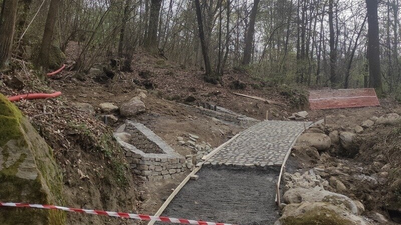 Le immagini dei lavori, condivise online, alimentano il dibattito. Tratti di sentiero dove il fondo naturale lascia spazio a strutture consolidate: base in cemento, armature metalliche, pavimentazione in pietra già posata, canalizzazioni per l’acqua e scavi evidenti ai lati. Un cambiamento visibile, che per alcuni significa sicurezza, per altri snaturamento.