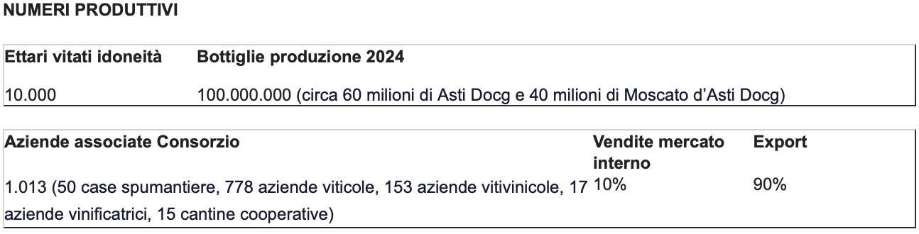 L’Asti Docg raccoglie il testimone dall’Alta Langa Docg, protagonista del 2025, ma lo fa con un peso specifico diverso. Parliamo infatti di uno dei vini italiani più conosciuti al mondo, con una produzione che sfiora i 100 milioni di bottiglie all’anno e una vocazione internazionale evidente: circa il 90% della produzione viene esportato. Numeri che raccontano molto più di una semplice eccellenza enologica: raccontano una filiera solida, una tradizione radicata e una capacità di penetrazione nei mercati che pochi altri prodotti possono vantare.