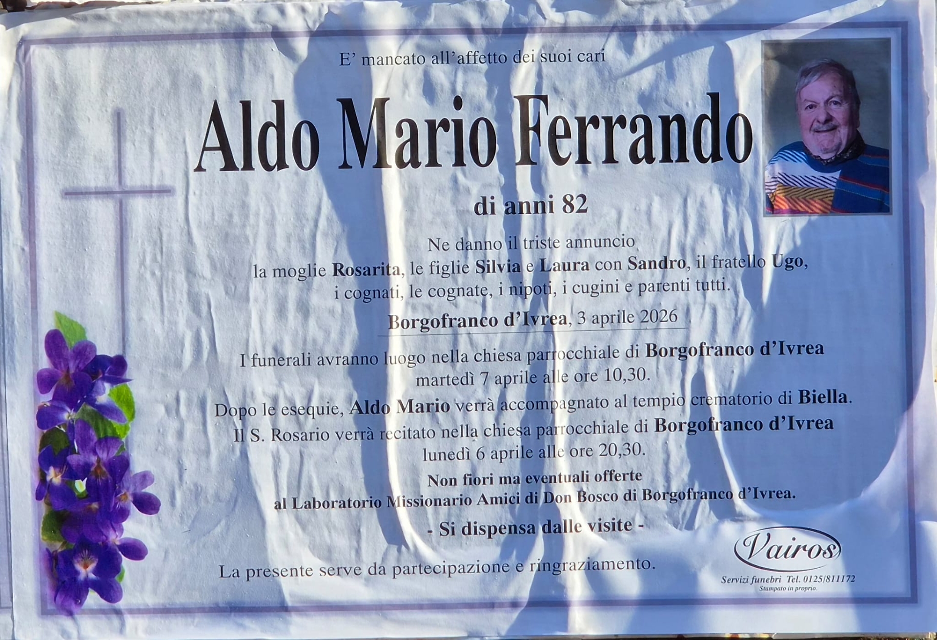 È morto a 82 anni Aldo Mario Ferrando, fondatore della Bottega del Canestrello e figura chiave nella rinascita di uno dei dolci simbolo di Borgofranco d’Ivrea. Se n’è andato venerdì 3 aprile. I funerali si terranno martedì 7 aprile alle 10.30 nella chiesa parrocchiale di Borgofranco, con rosario lunedì sera.