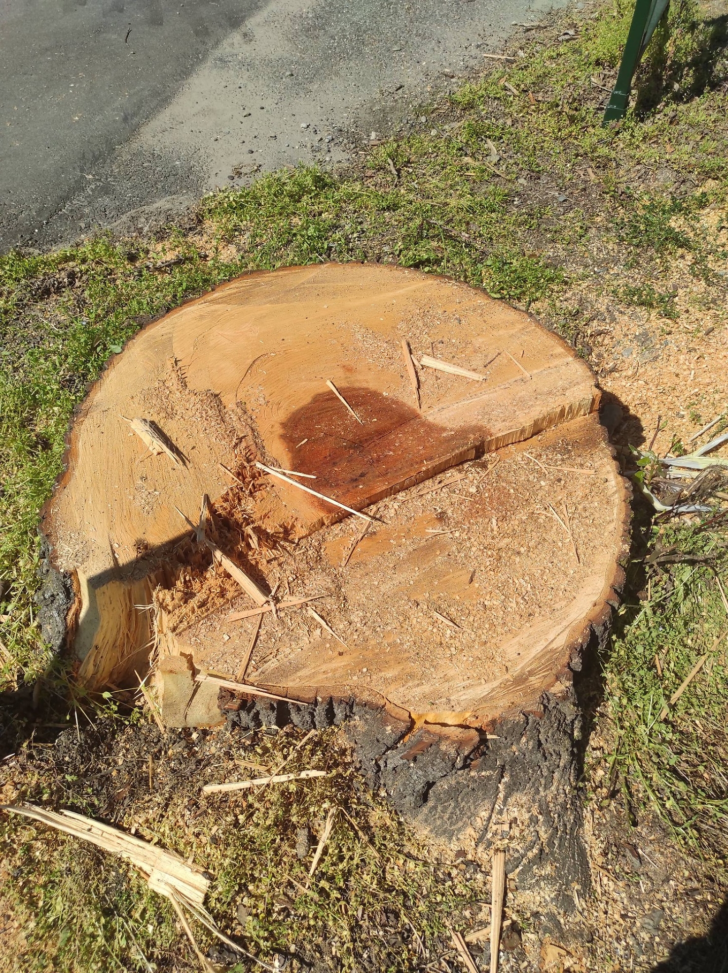 Quel che resta oggi di uno degli alberi tagliati
