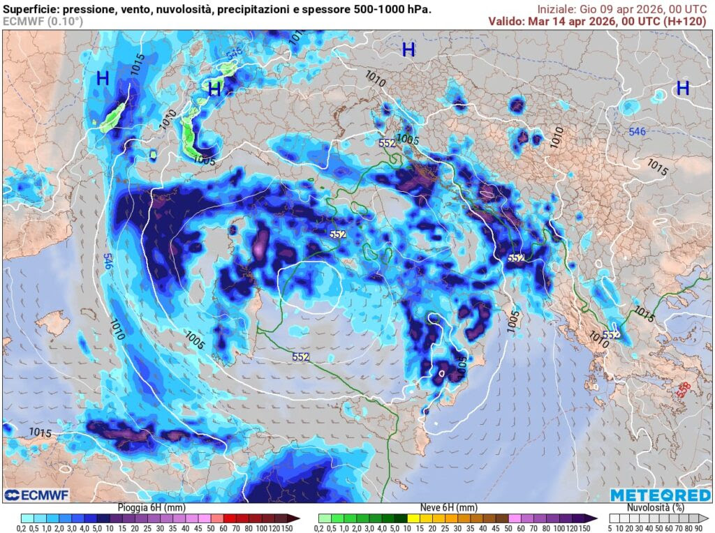 Le precipitazioni accompagneranno il fenomeno: lunedì 13 aprile la pioggia interesserà il Nord e le coste tirreniche, mentre martedì 14 coinvolgerà il Centro-Sud, Sardegna e Sicilia, contribuendo a depositi più consistenti di pulviscolo.