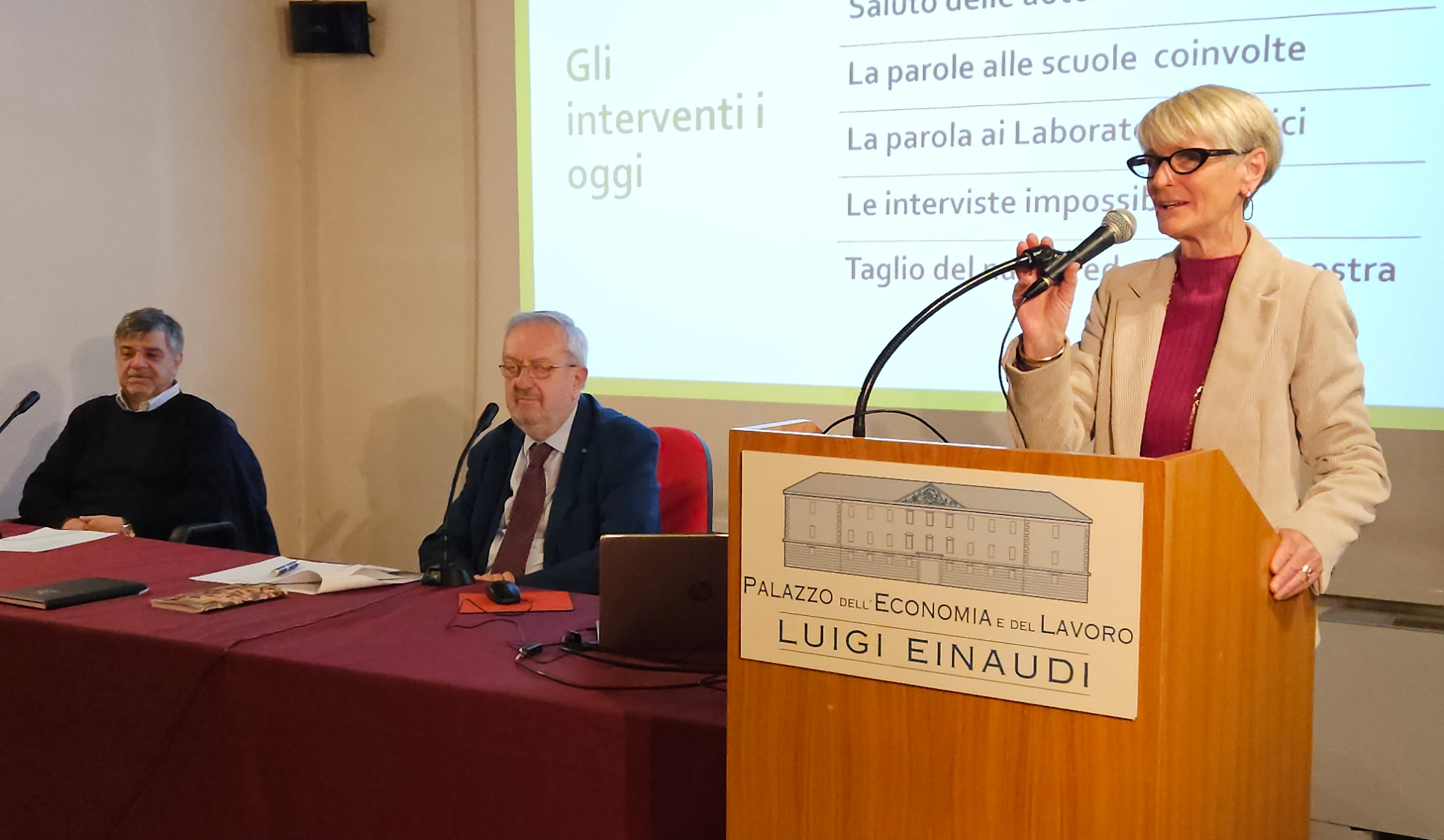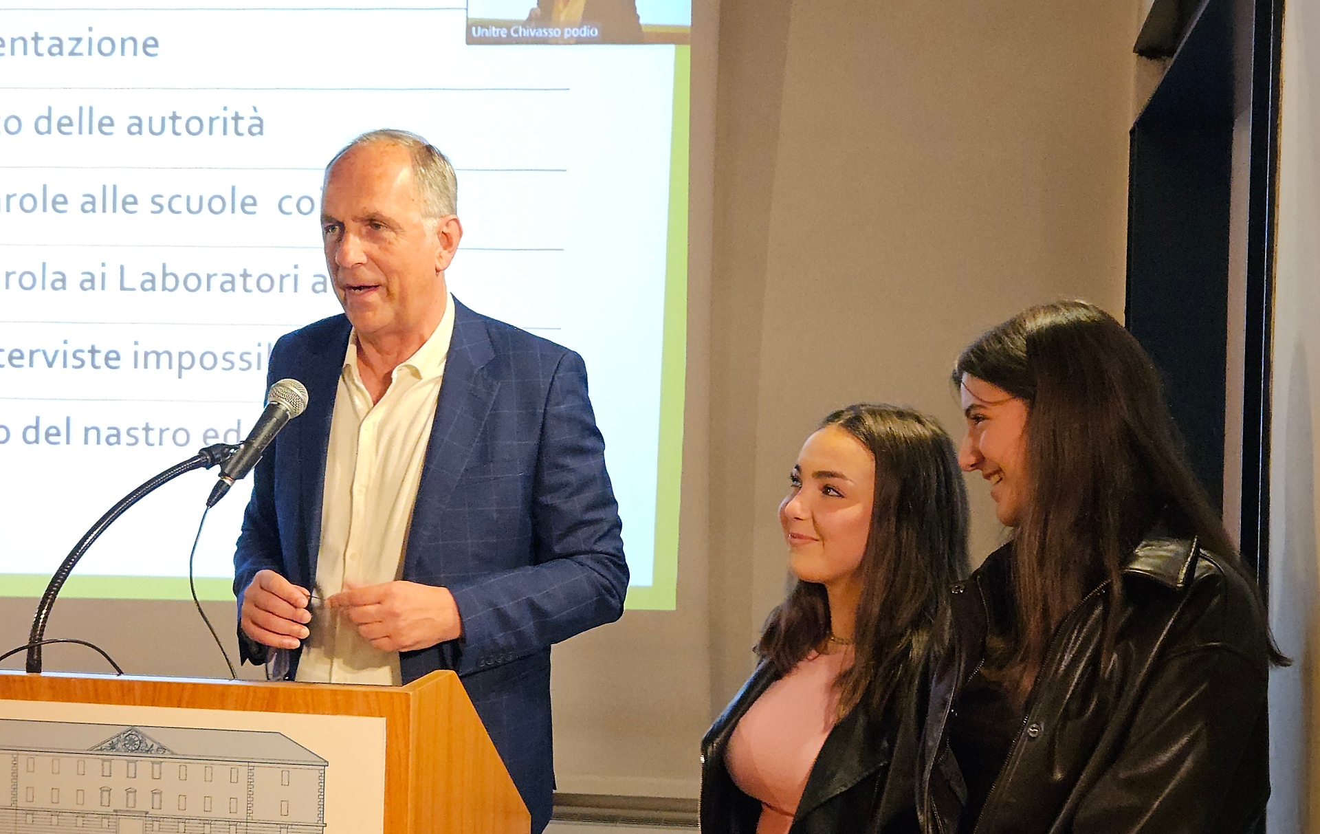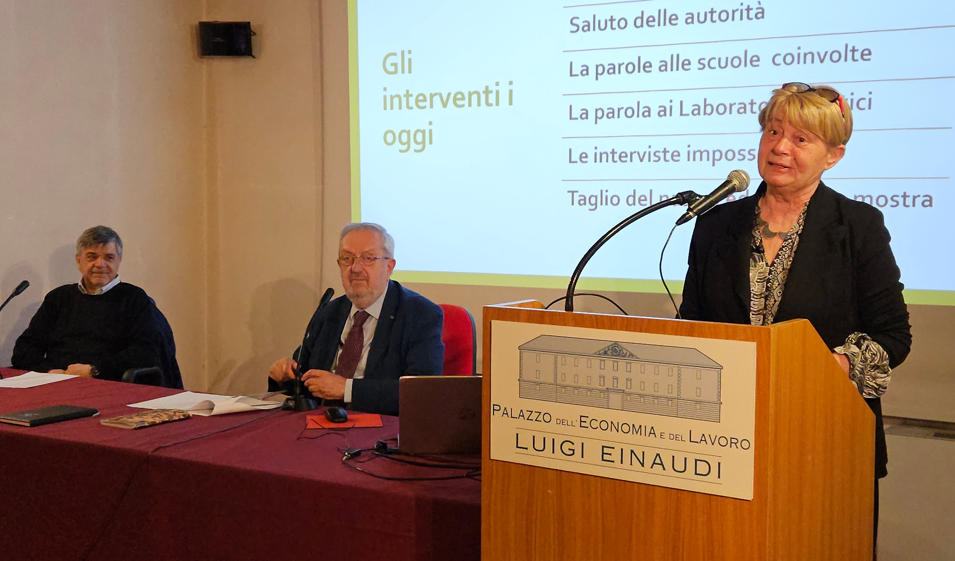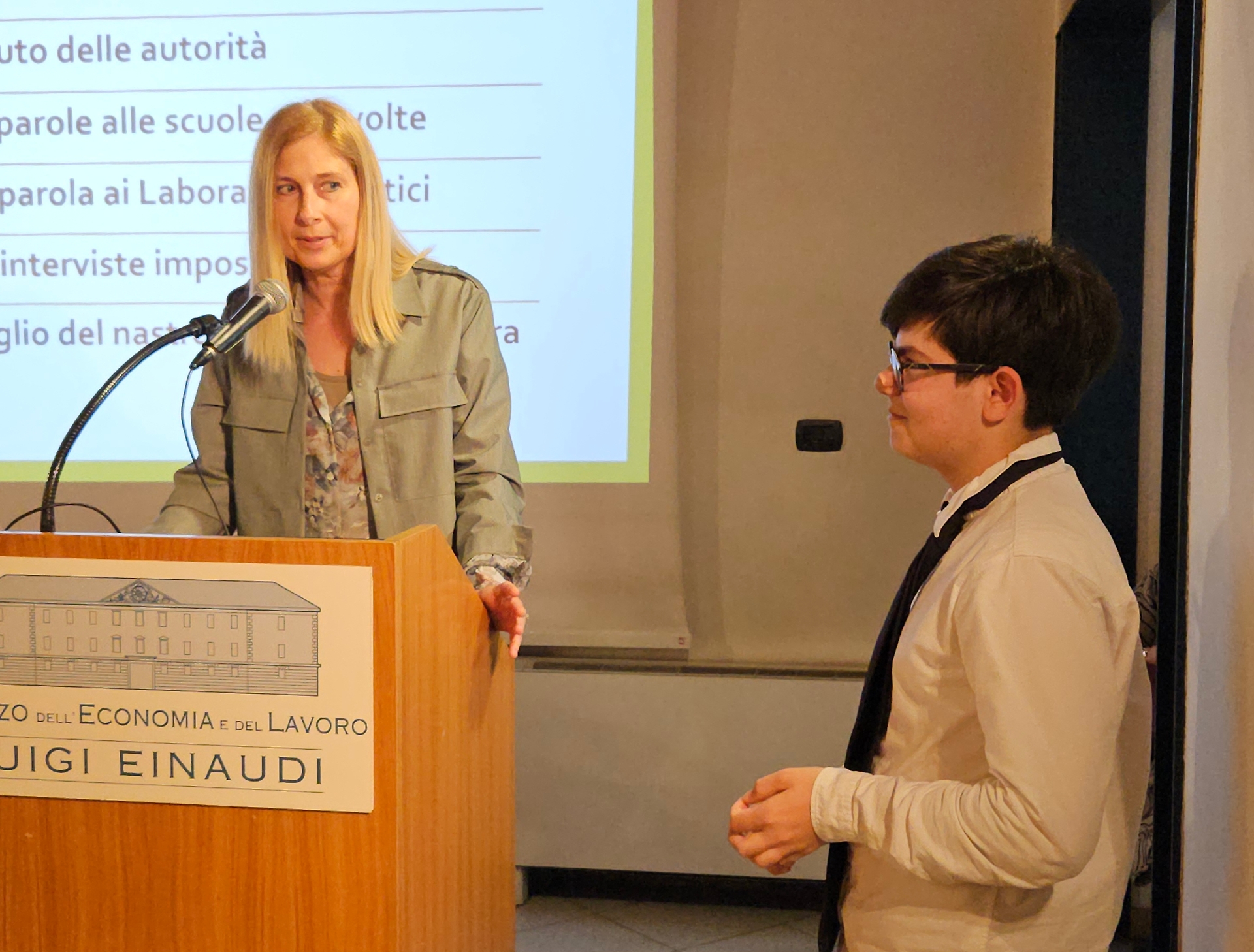 Hanno preso poi la parola il professor Mario Marino del liceo Newton di Chivasso, insieme alle allieve Emma e Rebecca, per l’Europa Unita la professoressa Angela Camerano e i giovanissimi Emanuele e Vinicio, per il Calamandrei la professoressa Paola Bosso con gli allievi Giada e Ferdinando, mentre in rappresentanza del Martinetti la professoressa Serenella Quarello con Elia. Ciascuno di loro ha raccontato il progetto a cui hanno lavorato e la propria esperienza.
