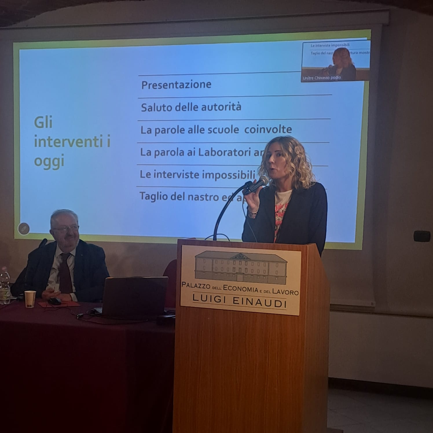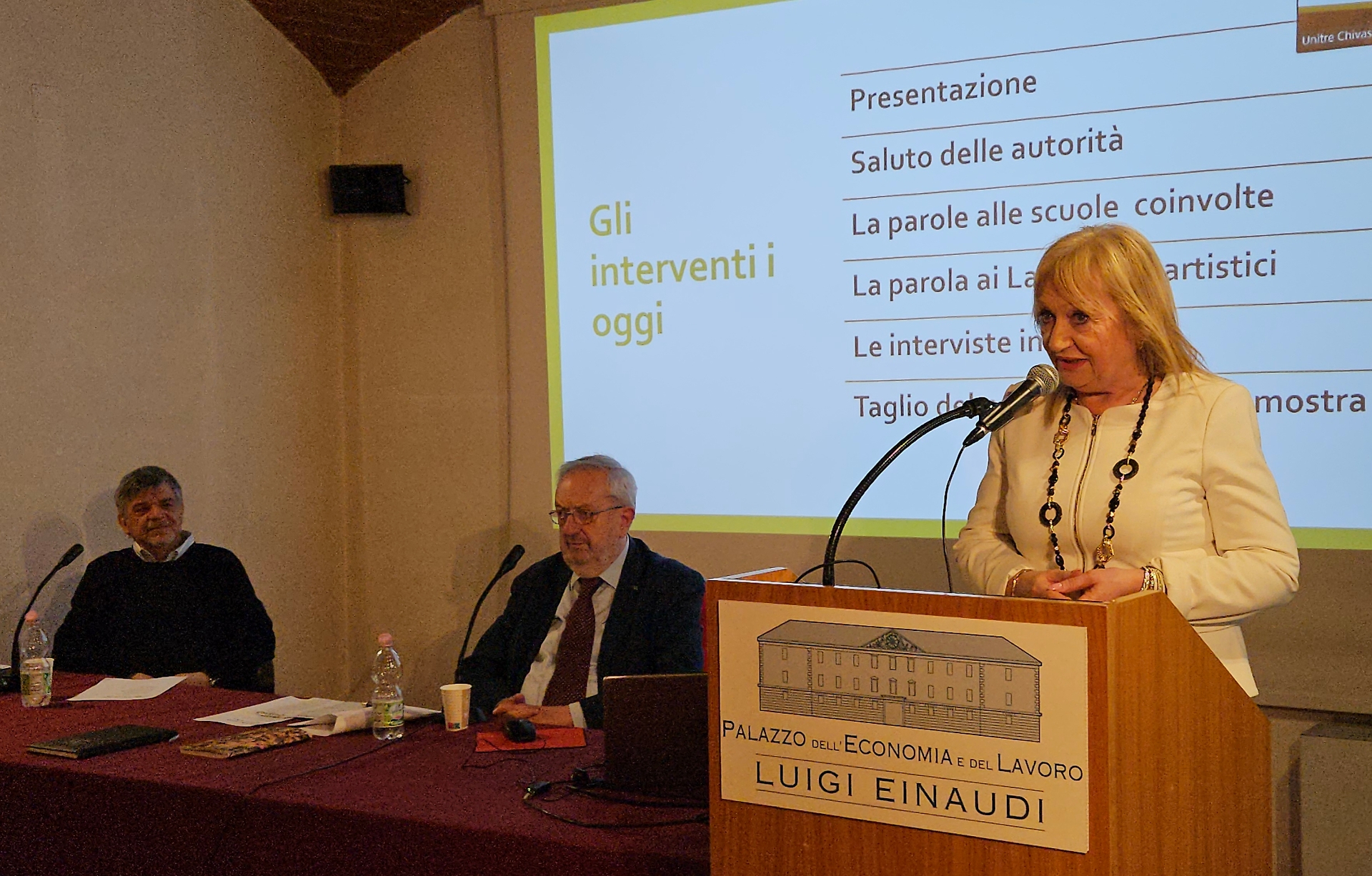 Sono intervenute anche la vicepresidente dell’Unitre di Chivasso, ed anche responsabile dei corsi dell’associazione, Annamaria Gonella, e la coordinatrice dei corsi e direttrice artistica degli eventi di Prisma Laboratorio Artistico, Alessandra Sgura.
