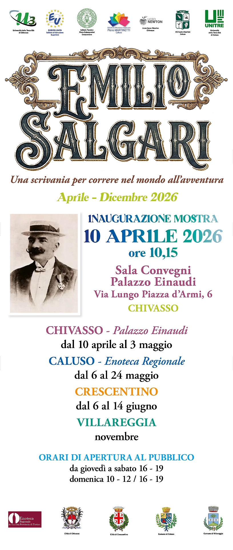 16 aprile, ore 21, a Palazzo Einaudi, il prof. Silvio Bertotto terrà una lezione dal titolo: “Dal Corsaro Nero a Sandokan. Emilio Salgari e le politiche coloniali del suo tempo”.
