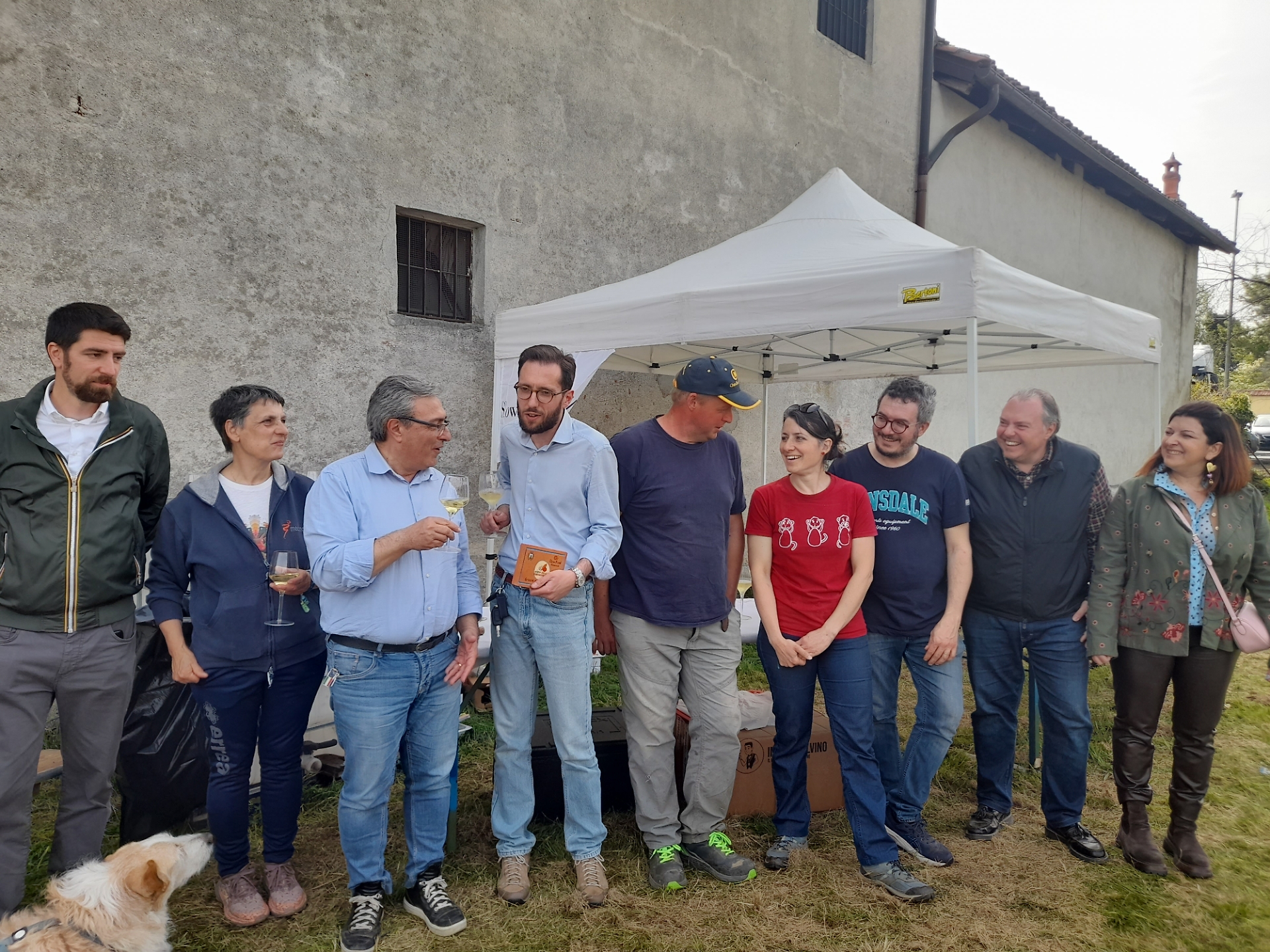 Amministratori e volontari nel prato che presto di trasformerà in orto-giardinoorto