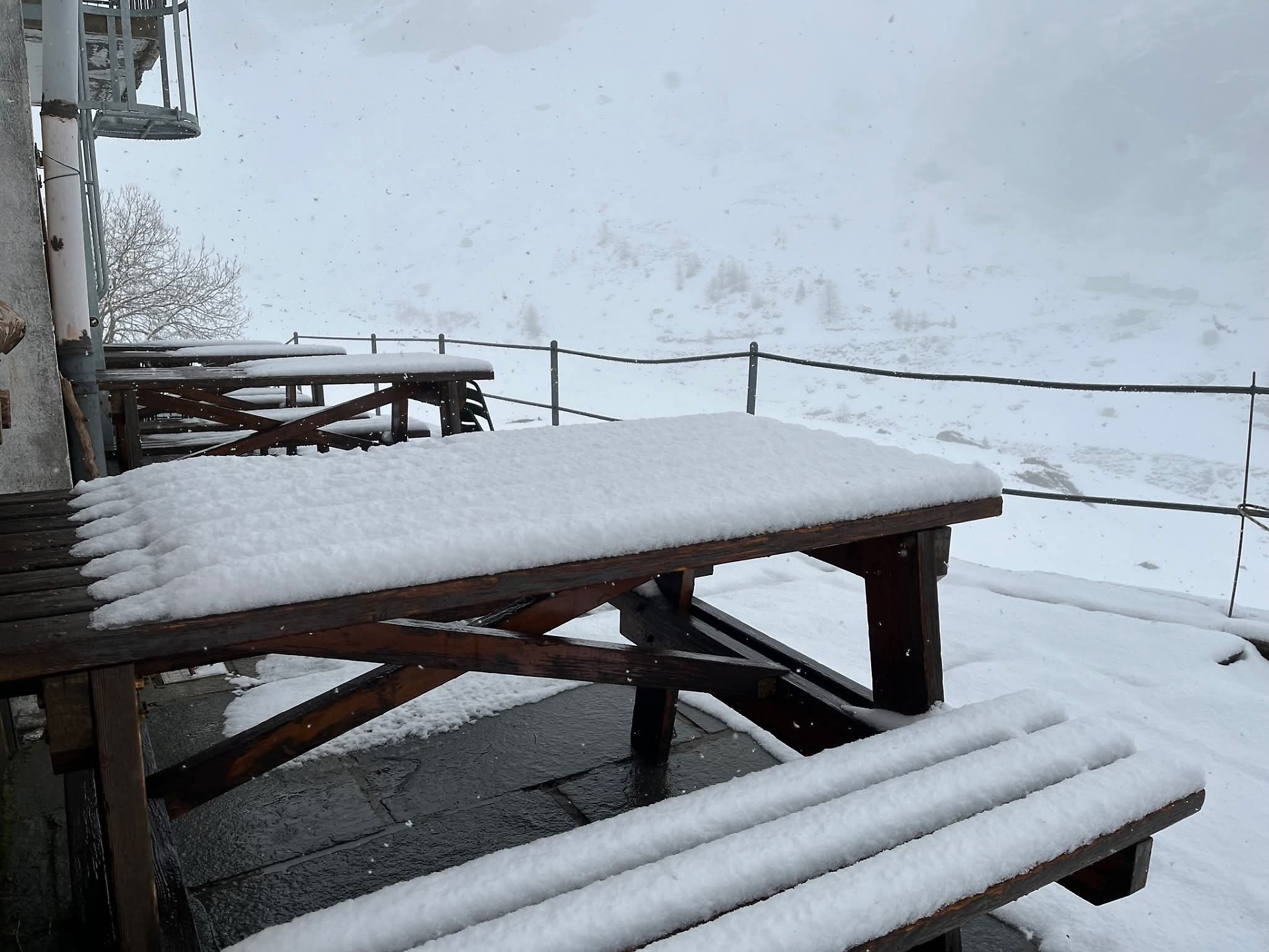 Un episodio tutt’altro che banale per il periodo, che conferma come la primavera in quota possa ancora riservare condizioni pienamente invernali. A oltre 2.200 metri di altitudine, il paesaggio si è trasformato nel giro di poche ore, con un manto nevoso compatto che ha ricoperto strade, sentieri e pendii.