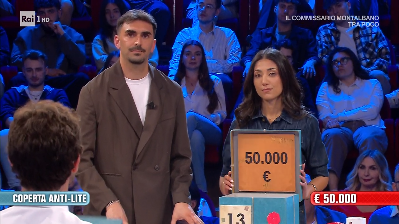 La partita si apre bene con l’eliminazione del pacco da 1 euro, ma subito dopo il destino cambia: esce il pacco da 200mila euro. Nonostante i colpi duri – con l’uscita anche dei 75mila e dei 20mila euro – la coppia mantiene la calma e rifiuta la prima offerta del Dottore da 33mila euro.