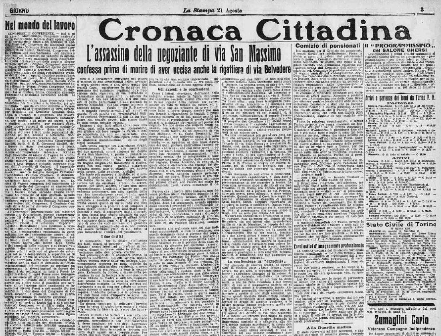 Teatro dell’omicidio una bottega da rigattiere ricolma di stufe rabberciate, cataste di rottami e cianfrusaglie di ogni tipo. L’assassino, non essendoci molto da rubare, aveva stordito con otto colpi in testa la vecchietta e poi, dopo averle preso una catenina e 300 lire che aveva addosso in un grembiule, l’aveva soffocata con uno straccio e reciso la carotide con una lima triangolare.