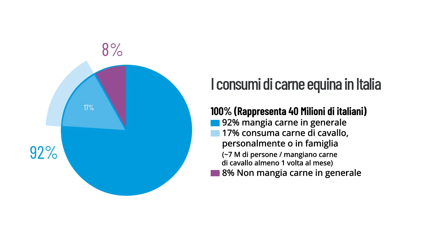 Il contesto sociale sembra però cambiare. Un sondaggio Ipsos diffuso da Animal Equality Italia indica che l’83% dei consumatori di carne nel Paese dichiara di non mangiare carne di cavallo, mentre il 73% afferma di provare empatia per questi animali, considerandoli alla pari di cani e gatti.