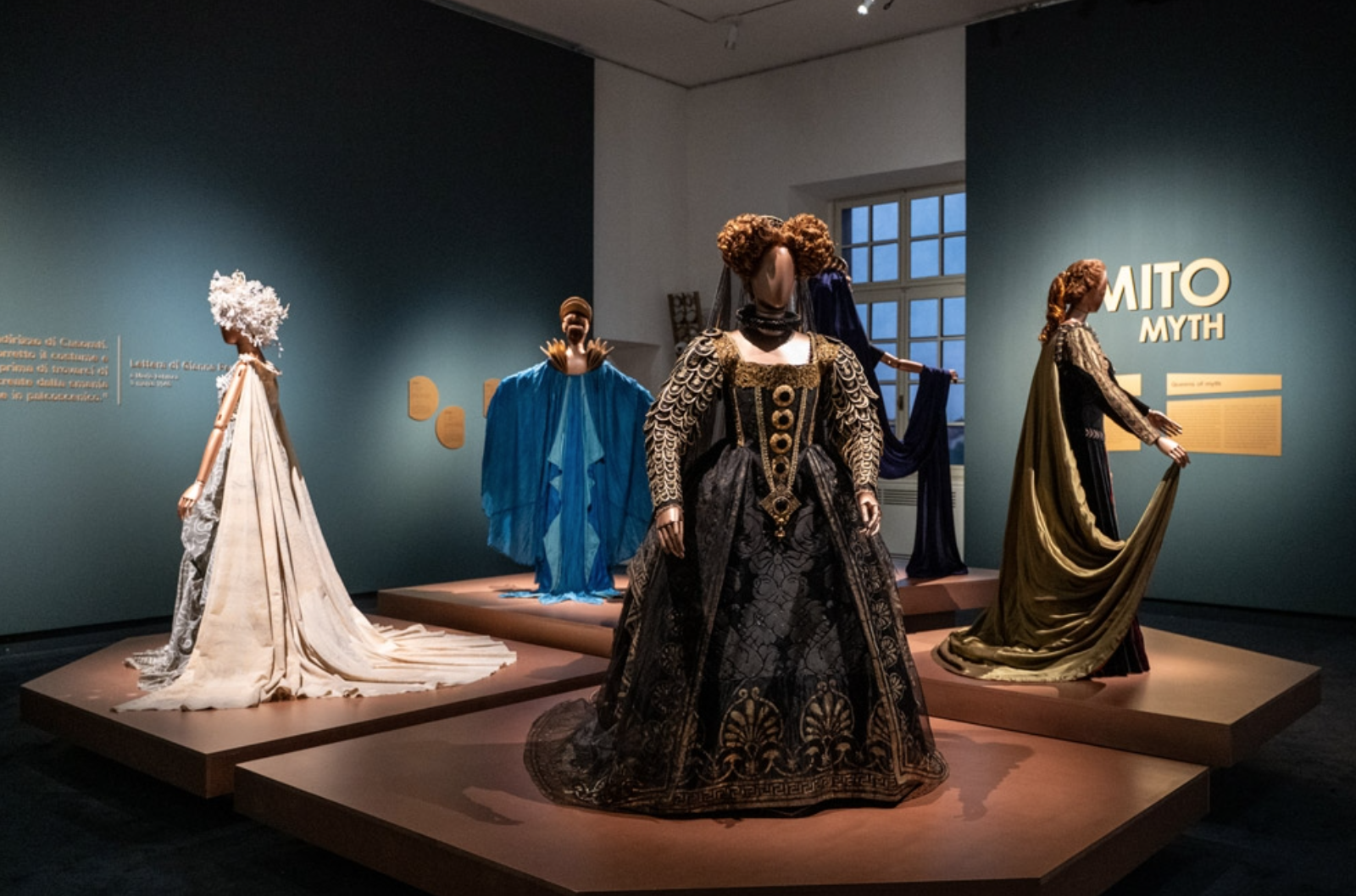 Il visitatore può osservare da vicino tessuti preziosi, ricami eseguiti a mano, volumi costruiti con precisione quasi architettonica e dettagli che sullo schermo o sul palco spesso sfuggono. È uno di quei casi in cui viene naturale rallentare il passo: perché davanti a certe cuciture si capisce che anche un orlo può raccontare un’epoca.