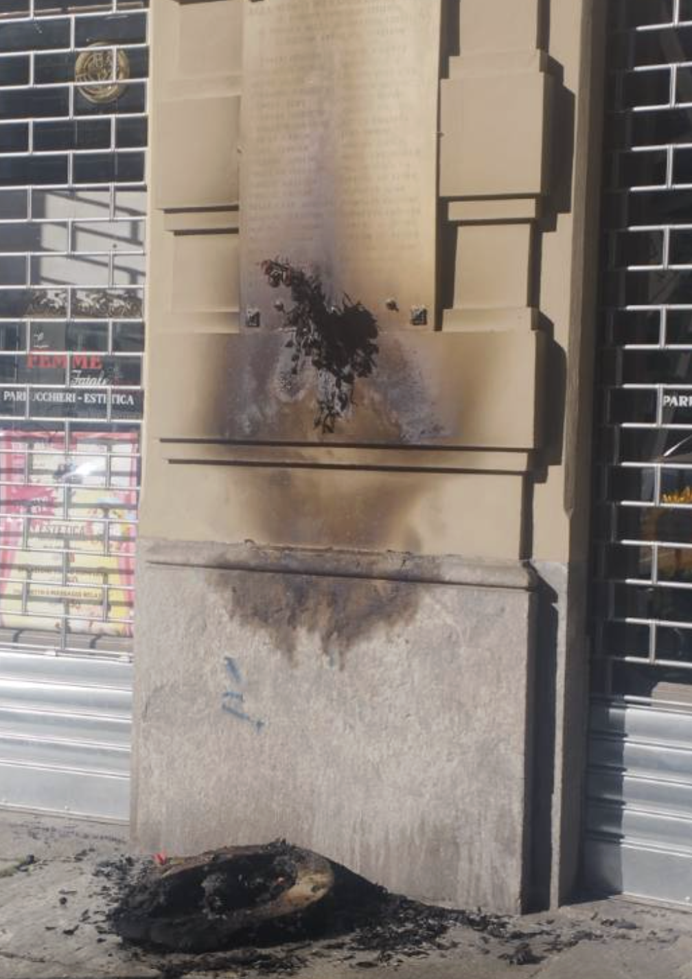 Sfregio alla memoria del 25 Aprile: incendiata la targa partigiana a Vanchiglia