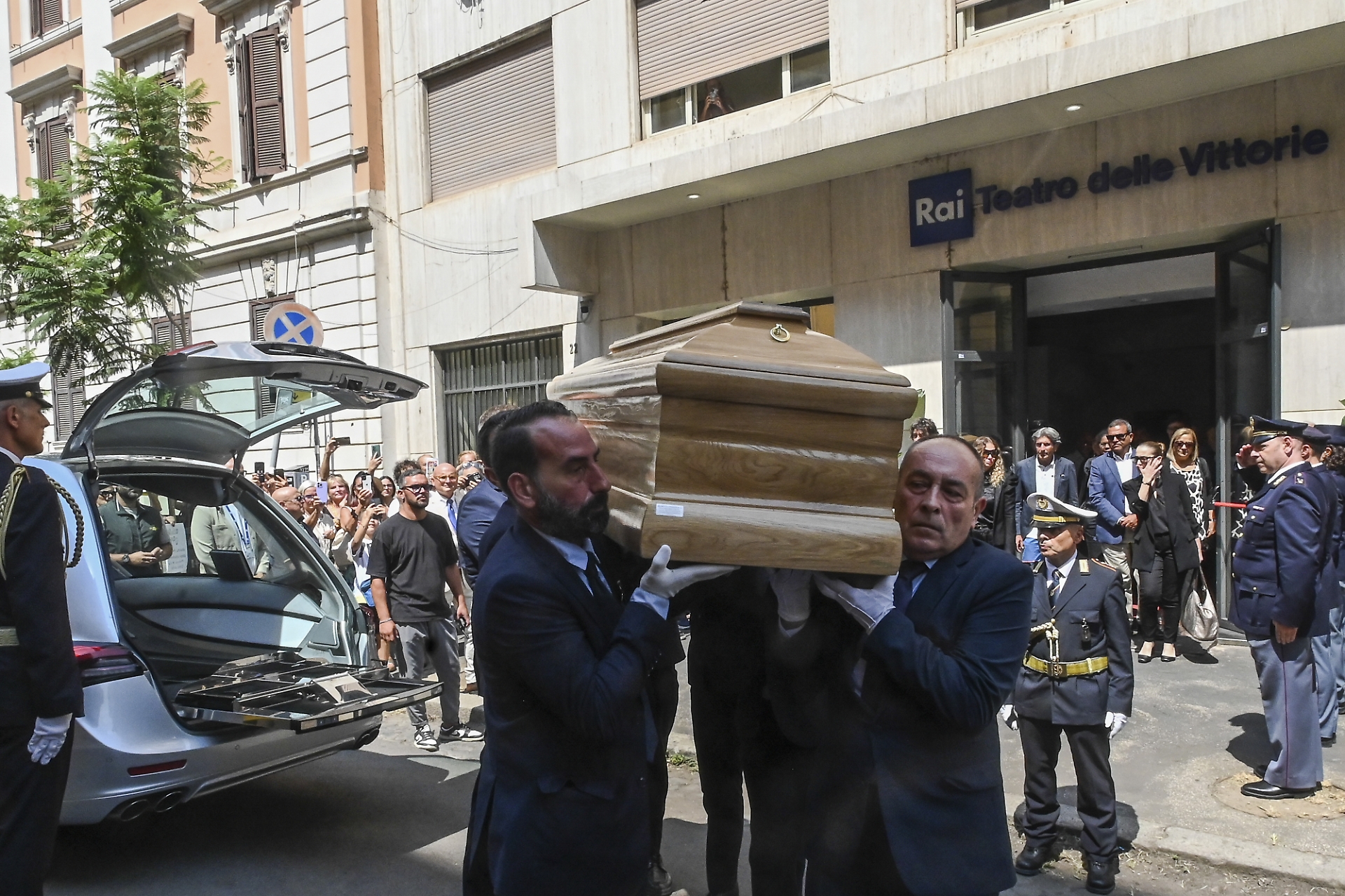 CAMERA ARDENTE PIPPO BAUDO - USCITA DEL FERETRO DAL TEATRO DELLE VITTORIE RAI