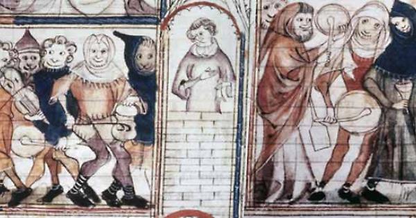 Il volgo “bona fama” medievale continua quindi a considerare i giullari come “dei senza casa e dei senza terra, dei reietti, degli accattoni, dei poveri di spirito e di quattrini, dei mezzo furfanti e mezzo infelici”, come si attesta nel nucleo più antico degli statuti di Moncalieri, anteriore al 1277. Invece negli statuti vercellesi del 1241, si diffidano gli osti dall’accogliere in taverna un’umanità infida di “glotonos, averitatores, basclacerios (tenutari di tavole da gioco), meretrices, galiatores, bannitos”. Anche nell’appellativo “gluto” o “glutus”, ovvero ghiottone, si riconosceva un’intonazione fortemente spregiativa, avvicinabile al significato che andavano assumendo in Piemonte nel XIII secolo anche i termini di “goliardus” e “goliarda”, trasformatosi poi dalla rappresentazione della dissolutezza morale, sfociata, a volte, in vere e proprie azioni criminali (https://www.giornalelavoce.it/carnevale-sangue-125709) ad una solo più irriverente scapigliatura intellettuale. La presenza, tra i “ribaldi”, di goliardi, giullaresse e frati sfratati, indusse la Chiesa a scagliare contro di loro moniti e anatemi. Abbiamo notizia, nelle fonti medievali del Piemonte, della pratica della “ciabra”, una sorta di chiassoso corteo mascherato che aveva la funzione di deridere il secondo matrimonio delle vedove e dei vedovi. Contro queste pratiche vi erano severe proibizioni, come documentato dai canoni sinodali. Dalle fonti sulla presa di posizione da parte delle autorità ecclesiastiche, apprendiamo che oltre a vietare la pratica della ciabra, vi furono interventi formali contro l’uso di prendere il nome di Abate da parte dei capi della compagnia goliardica che organizzava il chiassoso corteo. Malgrado i ripetuti decreti sinodali, spesso le gaie compagnie riuscivano a trasformare in diritto le loro richieste. Sappiamo, ad esempio, che all’Abbadia della Gioventù di Valmala era consentito di caricare il vedovo che non aveva pagato il “jabramaritum” su di un asino e portarlo in berlina in giro per il paese. In un caso di ciabra registrato a